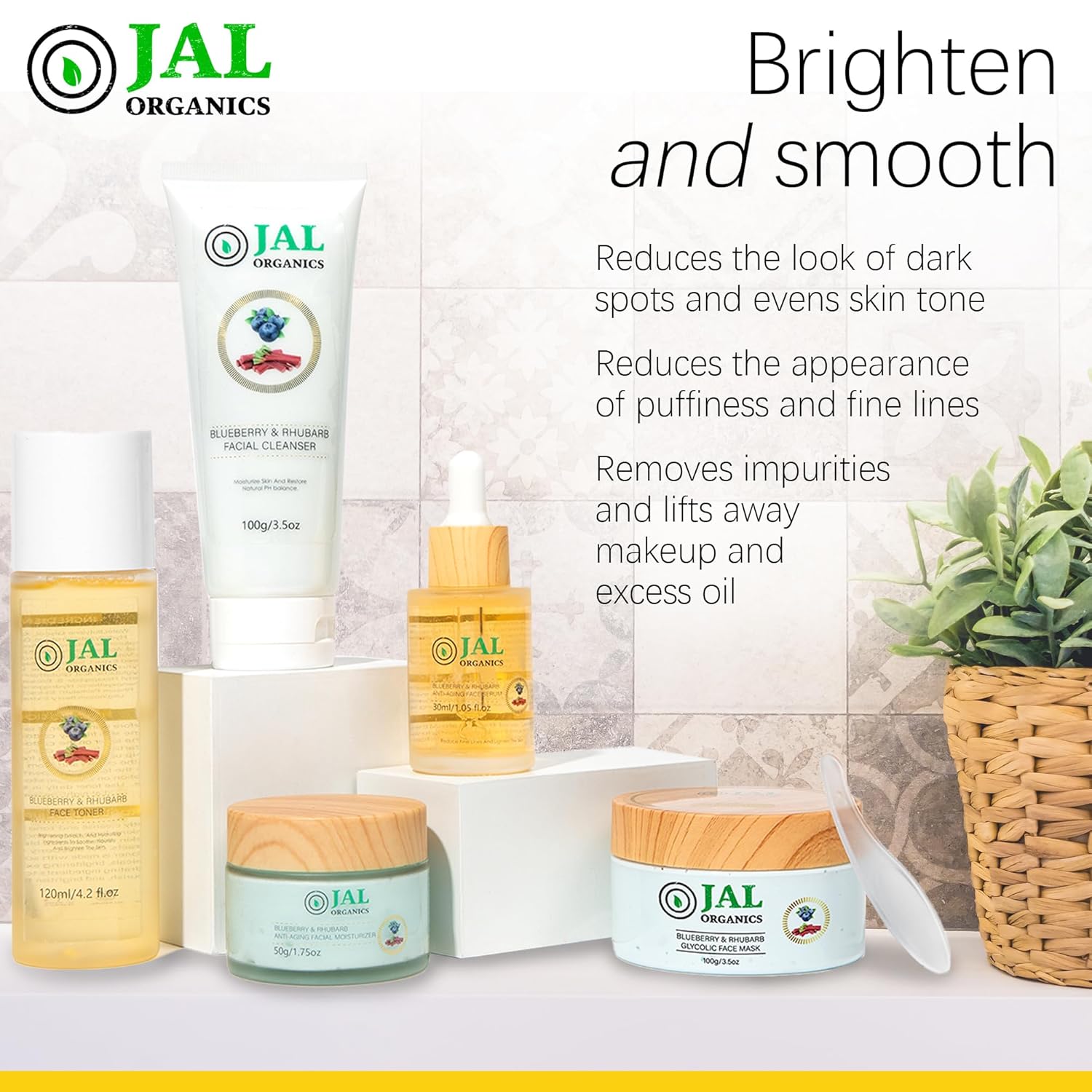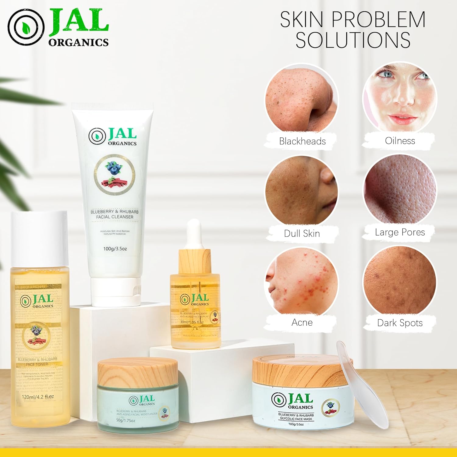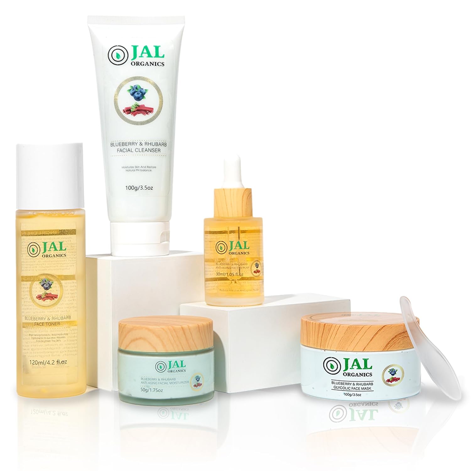 - š° Maximize Your Skincare Investment with A Smart Choice: Investing in the Jal Organics 5-piece Blueberry Rhubarb Skincare system is not just a purchase, but a smart move. Enjoy a comprehensive skincare routine without breaking the bank, thanks to our perfect blend of high-quality ingredients and multiple products. Witness the transformative effects of our premium skincare system as you indulge in cost-effective skincare luxury.