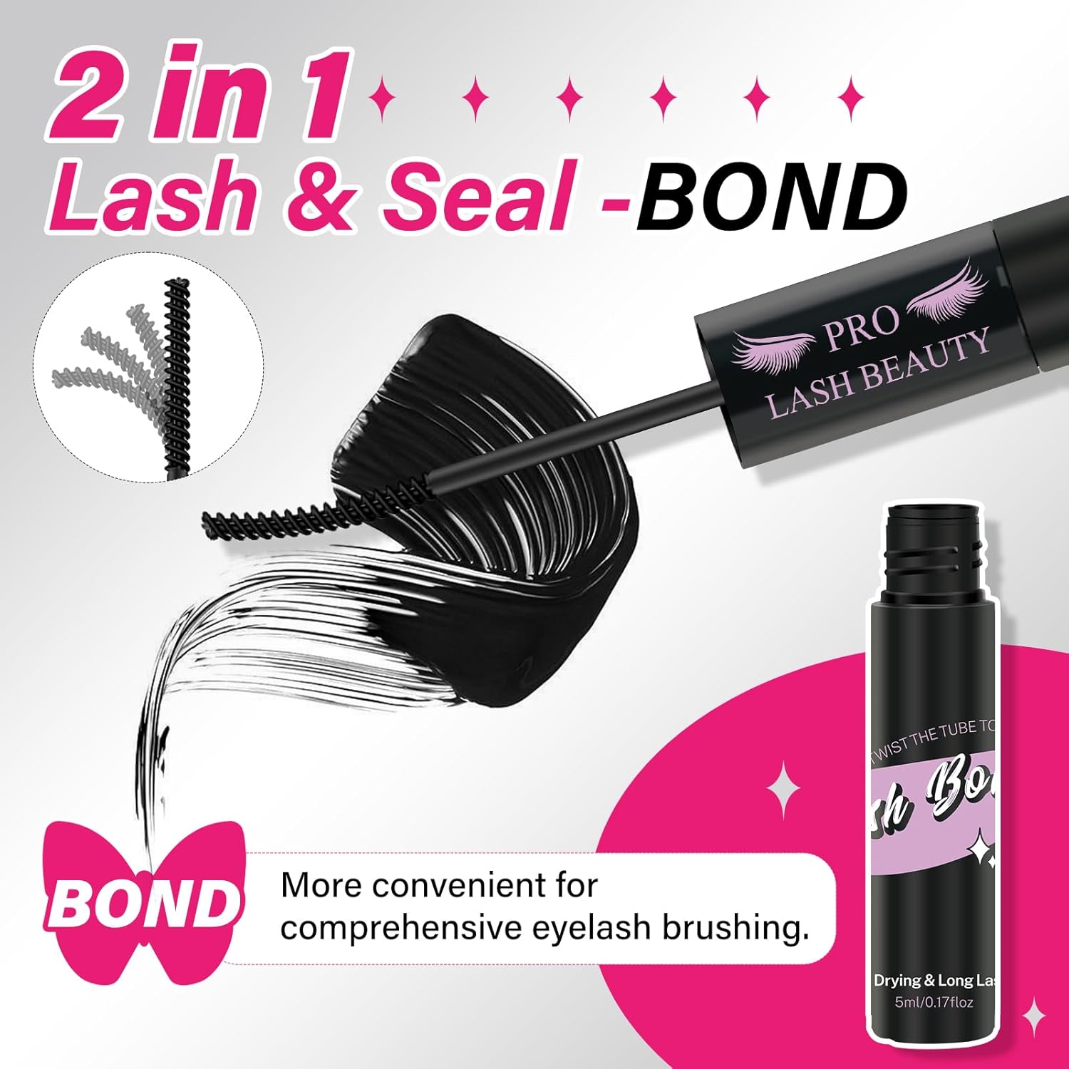 - Double sides double functions: PRO Lash Bond (5ml) and Seal (5ml) combine 2 steps into 1 tube. Glue your cluster lashes and longer the retention till 48 Hours.