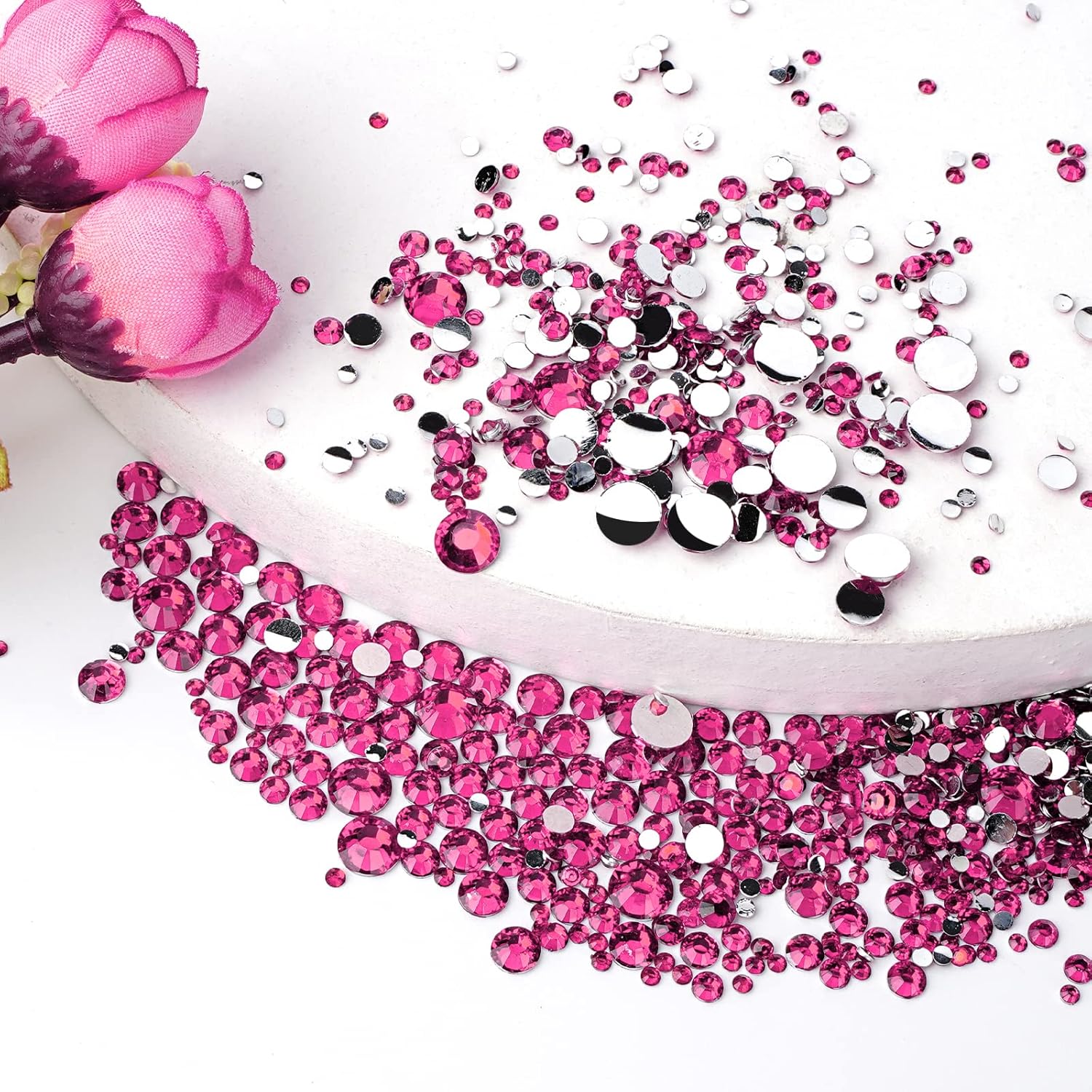 • PINK RHINESTONES WITH 12 GRIDS - They are 2mm, 3mm, 4mm, 5mm, 6mm. Meet your needs of nail art design, enough to succeed a complete clothing and shoes crafts project.