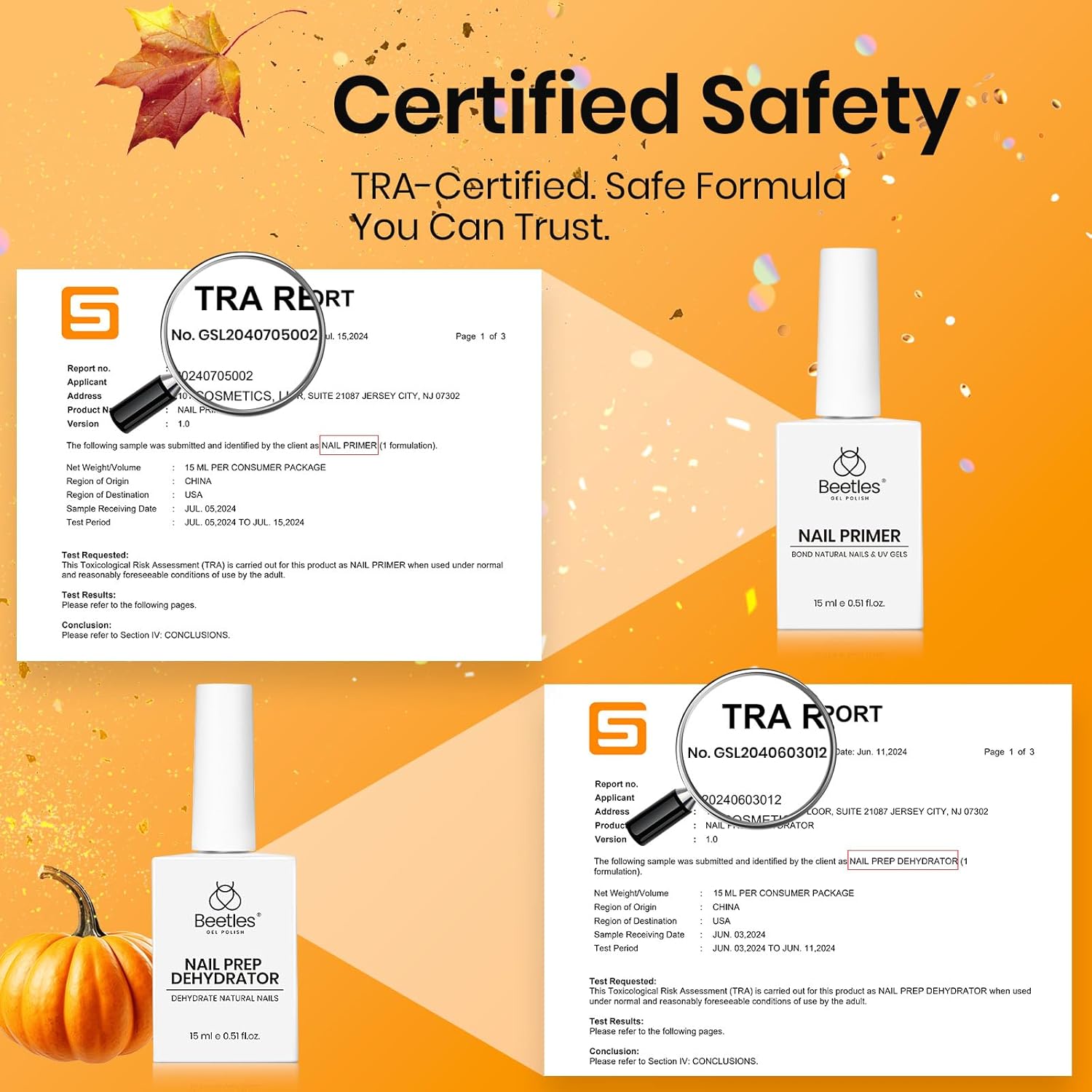 Beetles 4 Pcs 15ml Gel Top Coat and Base Coat Set with Nail Dehydrator and Primer Professional Nail Prep Acid-Free & Hema-Free Dehydrate Bond Primer Set for Acrylic & Gel Nail Polish Fall Nail Gifts