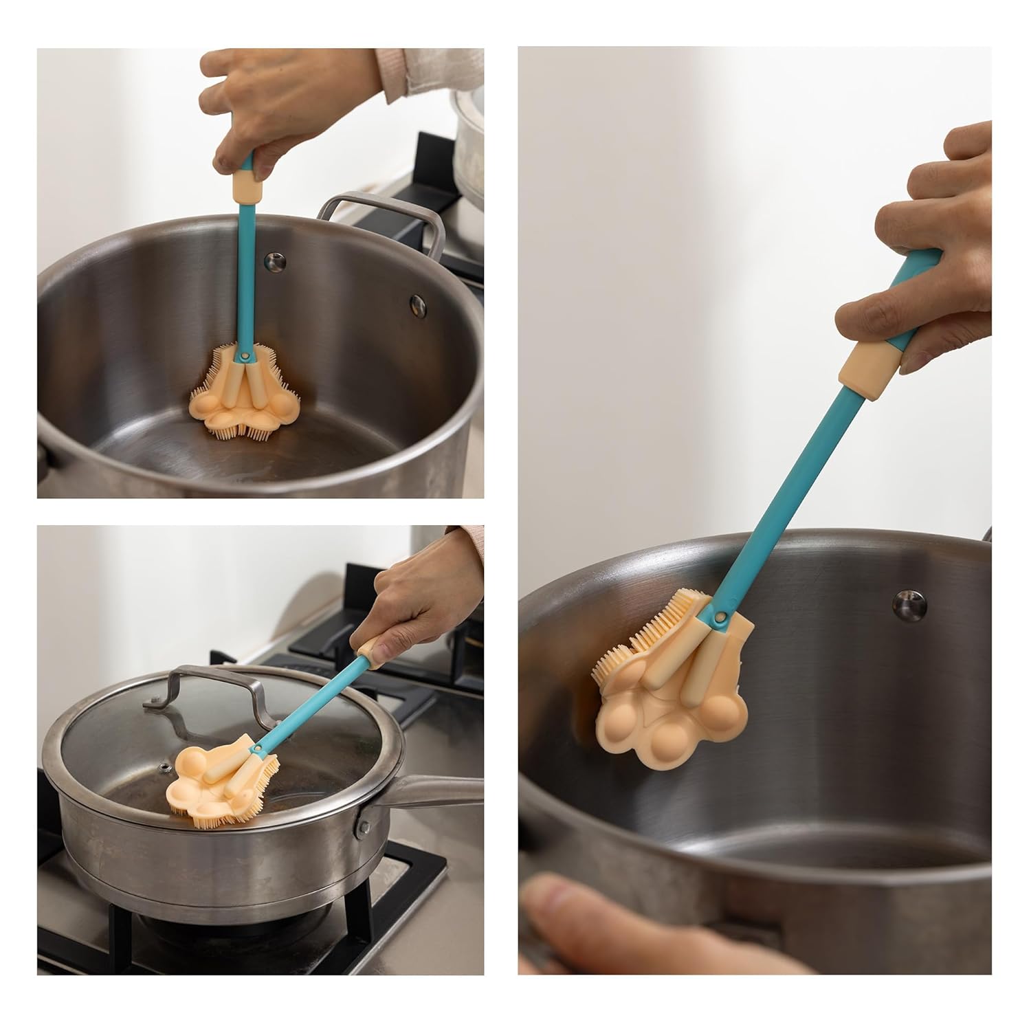 Adjustable Handle Length 10.5-13.8in Water Cup Cleaner Bottle Brush, Silicone Baby Bottle Brush, Pot Brush Cleaner, Blue