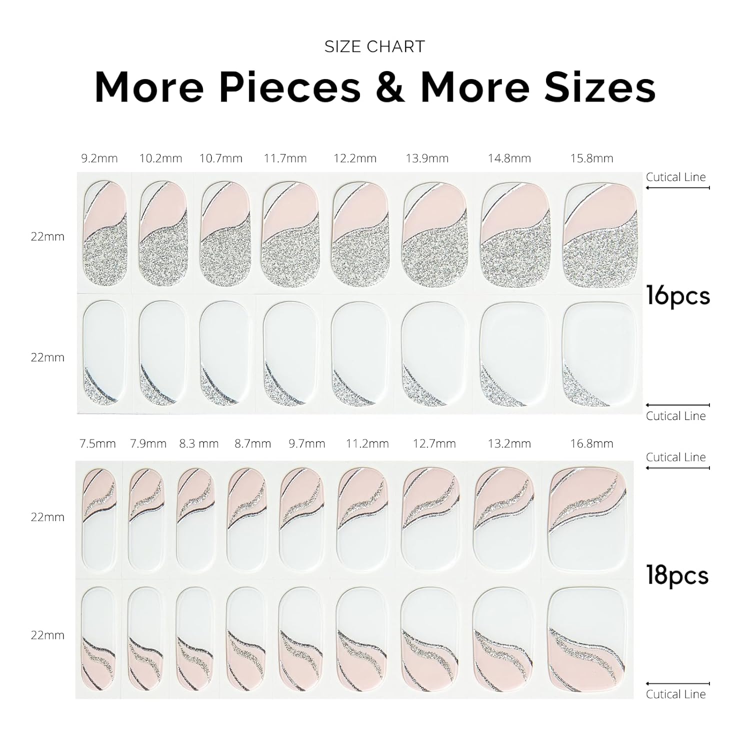 - 【34 PCS NAIL STRIPS】More Quantity & Sizes than Ever! - With 17 different sizes of our nail art stickers, you can easily find the right size to match your nails. - New curved side line fits even better with your nail shape for seamless adhesion.