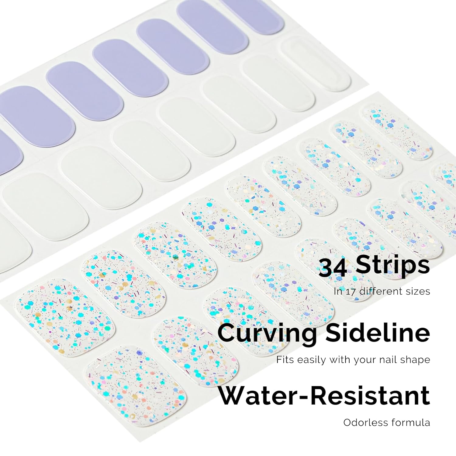 - 【WHAT YOU GET】34 Pieces gel polish strips in 17 sizes, 2 prep pads, 1 nail file, and 1 wooden stick. -Our semi cured nail strips are free from toxic, animal-derived, or harmful ingredients and are vegan, safe to use, and odorless. A perfect cost & time-saving DIY manicure kit.
