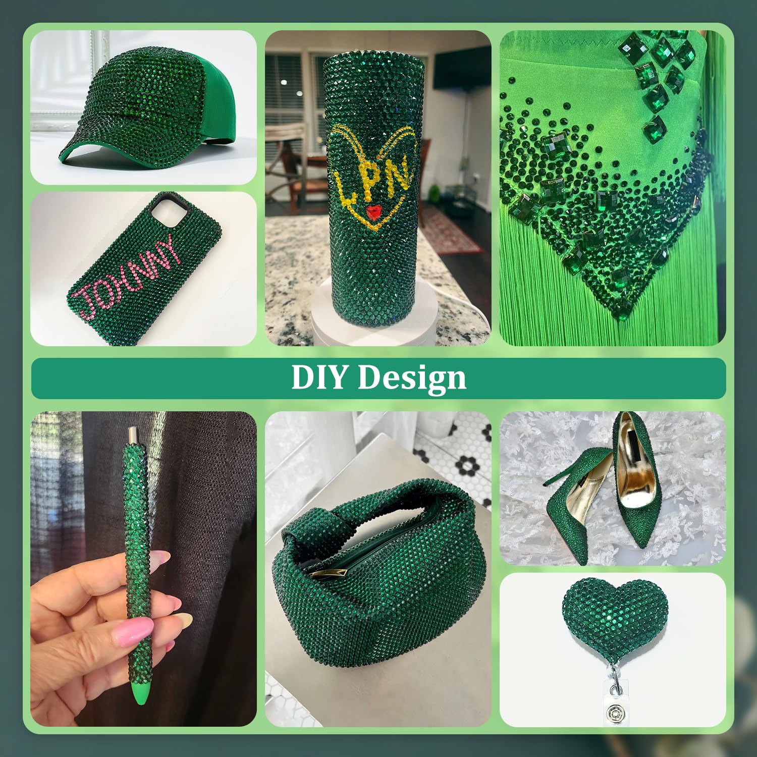 Resin Rhinestones for Crafting, 2 Boxeses Dark Green Multi Sizes Flatback Bedazzling Crystals for Crafts Nail Art Deco, Non Hotfix Gems Charms for Tumbler Shoes Clothing Fabric Face Makeup