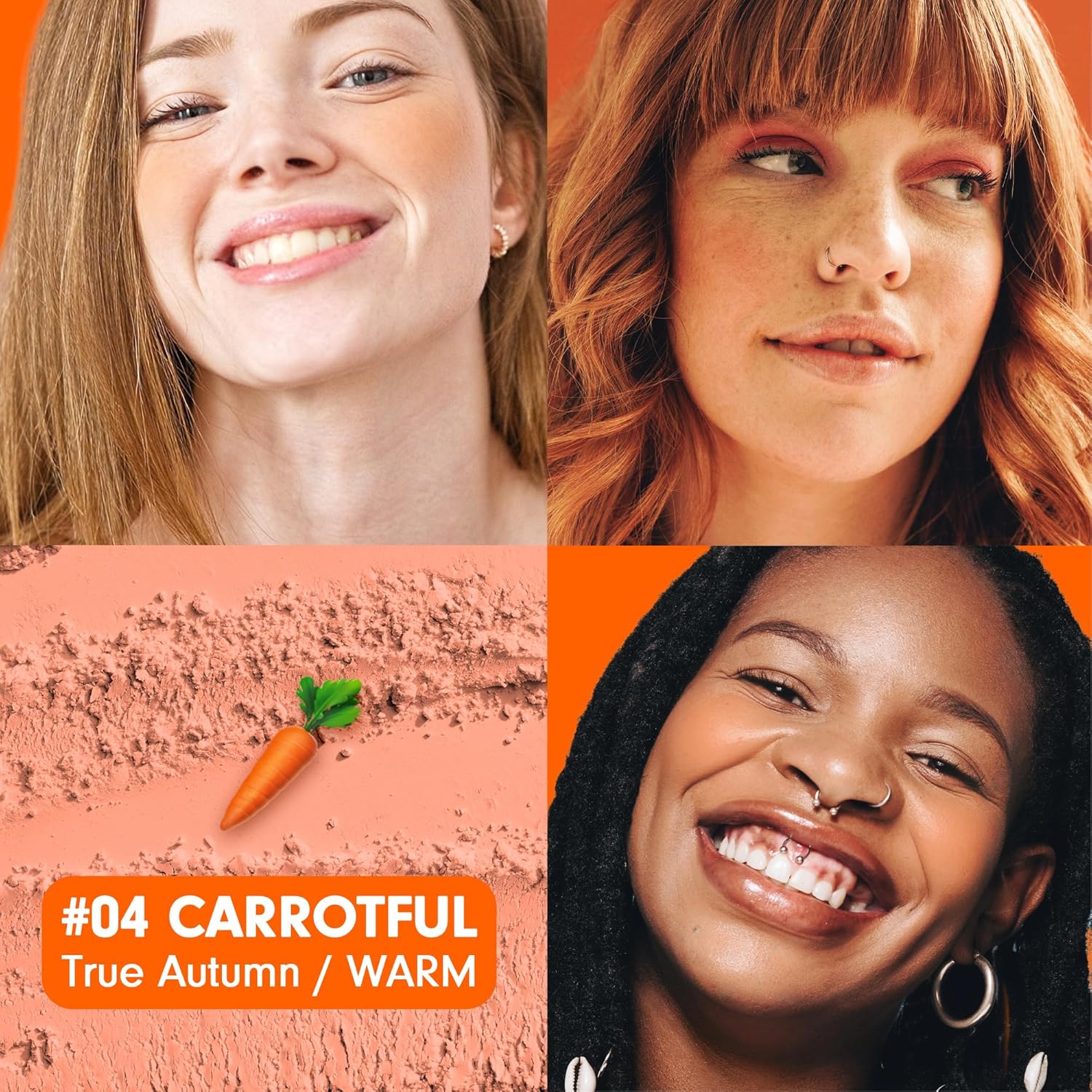 - CARROTFUL RADIANCE. Embrace an energy burst with #04 Carrotful shade. This blush powder for cheeks is enriched with fine-pigmented powder that imparts a radiant glow. The K-Beauty-inspired creamy blush tech ensures seamless blending for a radiant complexion resembling a ripe carrot's color.