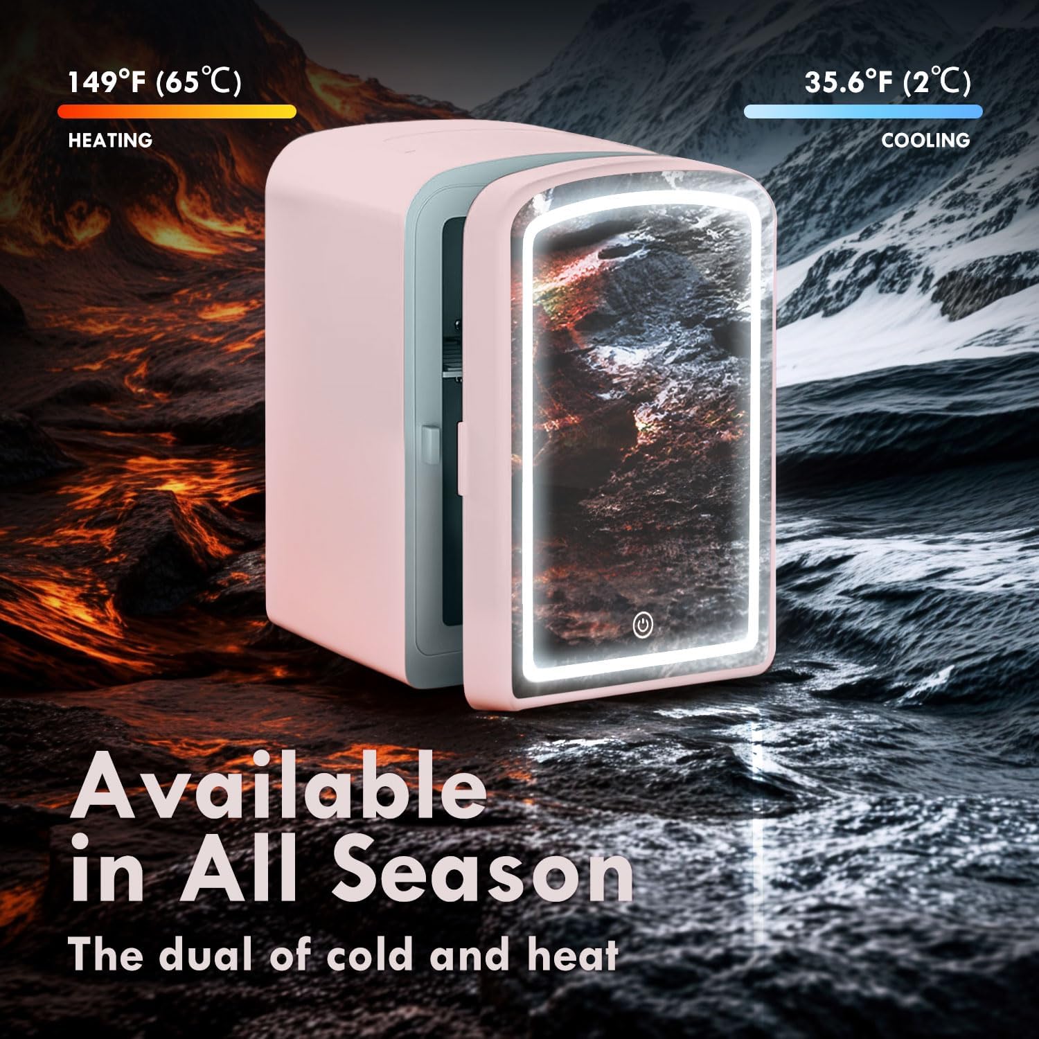 - Cooler or Warmer: Our skincare fridge has cooling and warming functions, chills to 59˚F (15˚C) below ambient room temperature to preserve your cosmetic, and keeps warm at 140˚F (60˚C) to keep your milk, coffee, bread warm