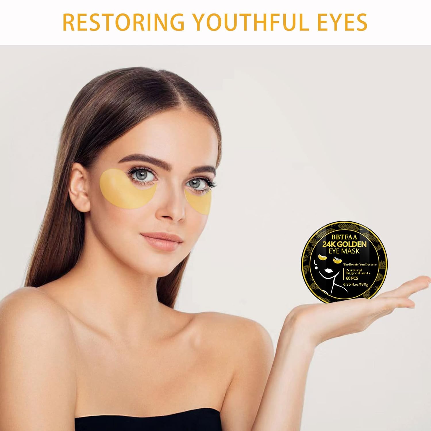 Under Eye Masks (24K Gold) for Puffy Eyes & Dark Circles Treatments-30Pair Under Eye Patches for Hydrating and Moisturizing and Smooth Wrinkles,Improve and Firm Eye Skin