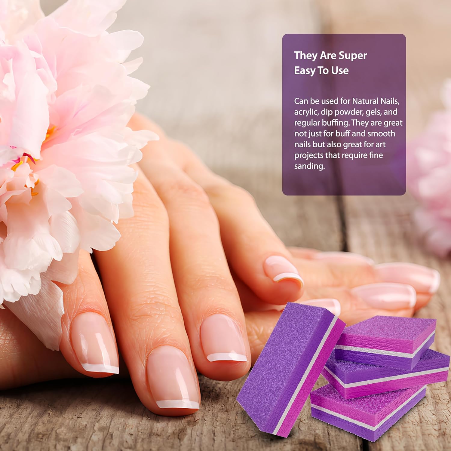 Moray Nail Buffer, Buffer Block Nail File 100/180 Grit, Mini Nail Buffers Block Sponge Double Sided Nail File for Acrylic Nails Manicure Tools 50PCS (Pink-Purple)