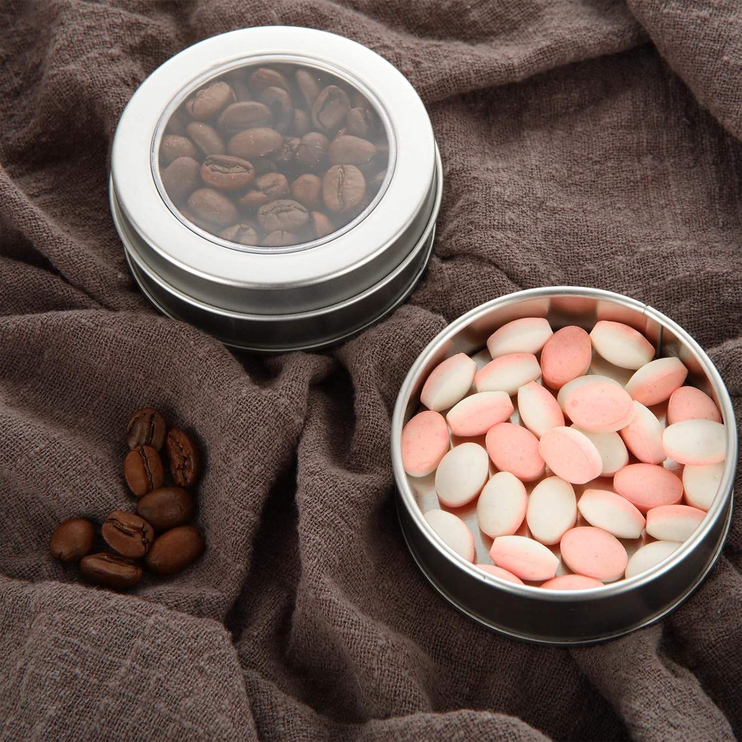 • Transparent Top: Round tin cans with a transparent window at the top allow you to quickly and easily find what you need without having to open the lid, and are reliable, lightweight and easy to use. The tins are a perfect size for a party favor, when you use it as salve tins or candy tins the top window will show your items clearly