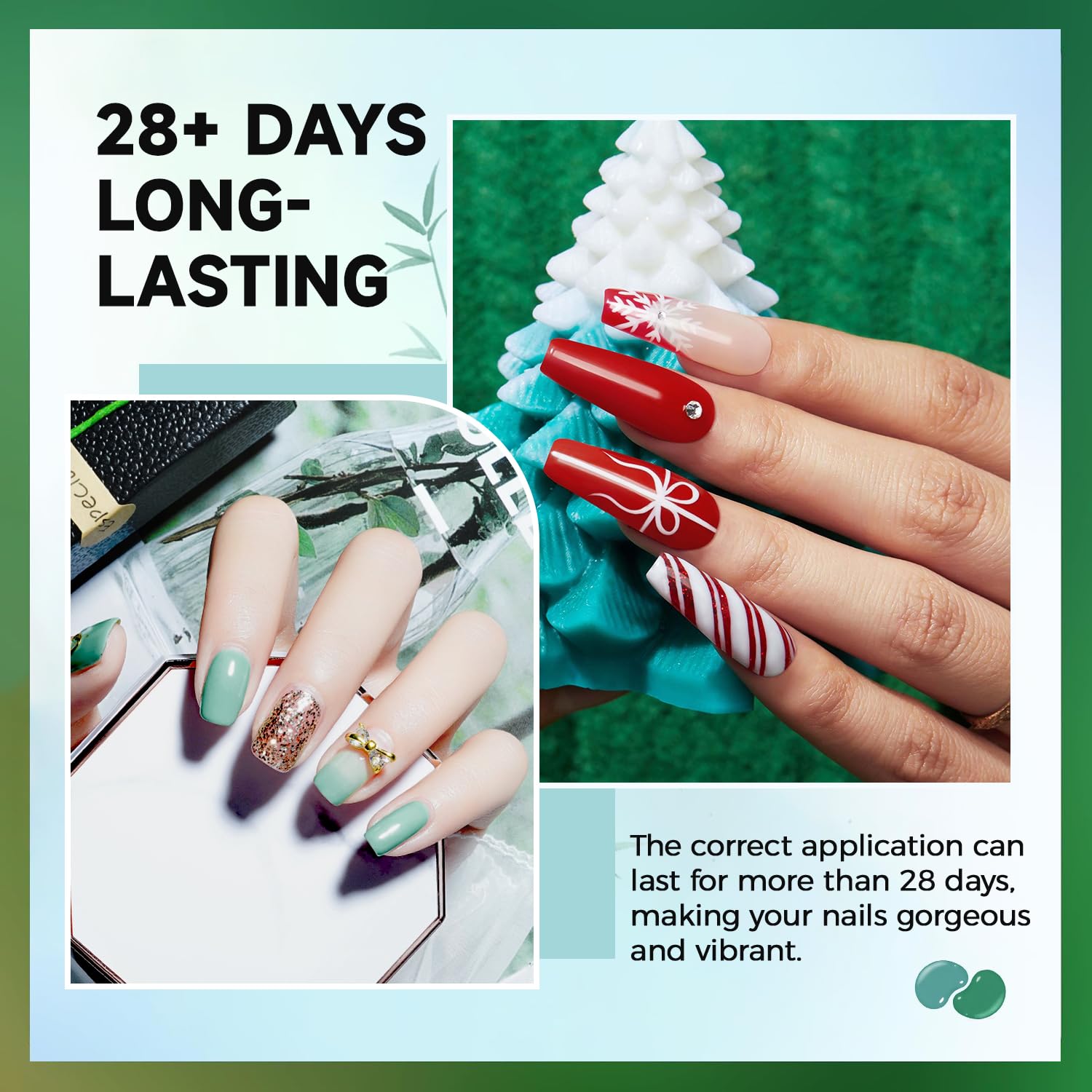 - Long-lasting and Durable: The gels can last about 28 days under the curing of the nail lamp, and still maintain a gorgeous lustre. Nail lamp and nail tools are not included in this product.