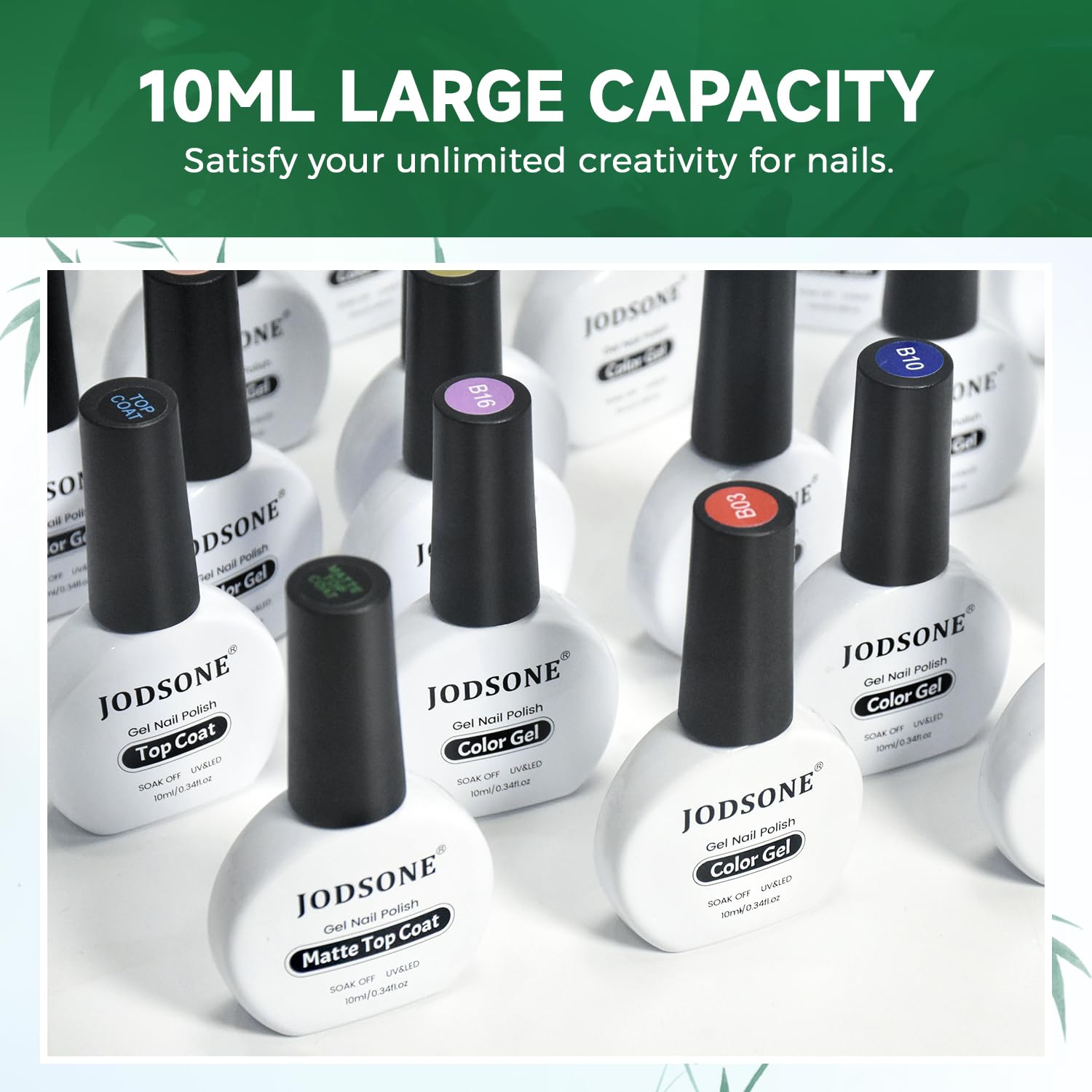 JODSONE Gel Nail Polish 20 Color Blue Red Matching Base Coat Glossy and Matte Top Coat 23 Bottles of 10ml Professional Nail Care Use