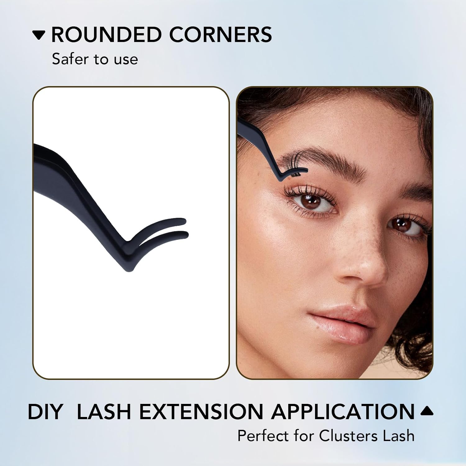 • 【 Premium Material 】 The false eyelash tweezers made of high quality stainless steel, durable and not easy to rust. The curved shape is very suitable for your eyes, and it is comfortable to use.TIPS: Please clean the eyelash cluster applicator after each use to ensure there is no glue residue on lashes clusters tweezers to keep them for long-term use