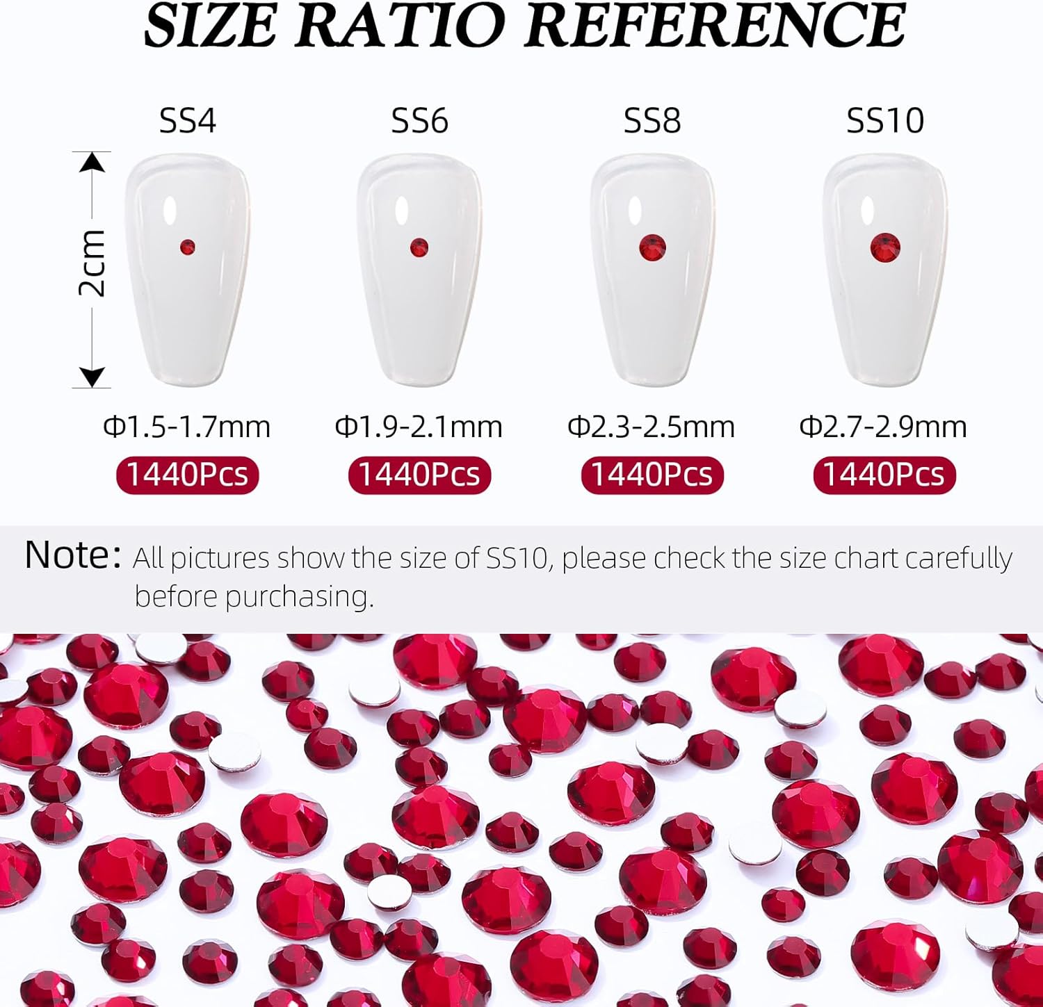 - Product Packaging: Bags packaging SS6 1.9~2.0 MM - 1440 Pcs siam flatback rhinestones