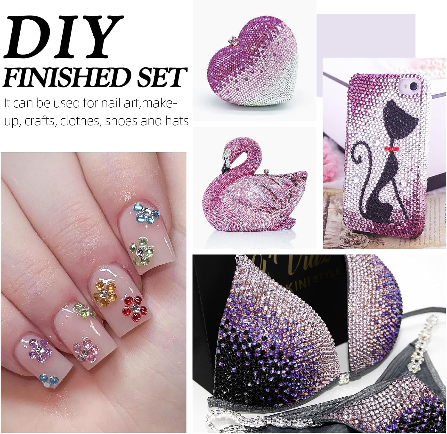 - Use tweezers and Picking Pen gem picker to pick rhinestones, There is no glue on the bottom, additional nail gel is required, or other professional glue for makeup or nails; Can use E6000/E7000 super glue to fix on crafts, art decoration; not hotfix