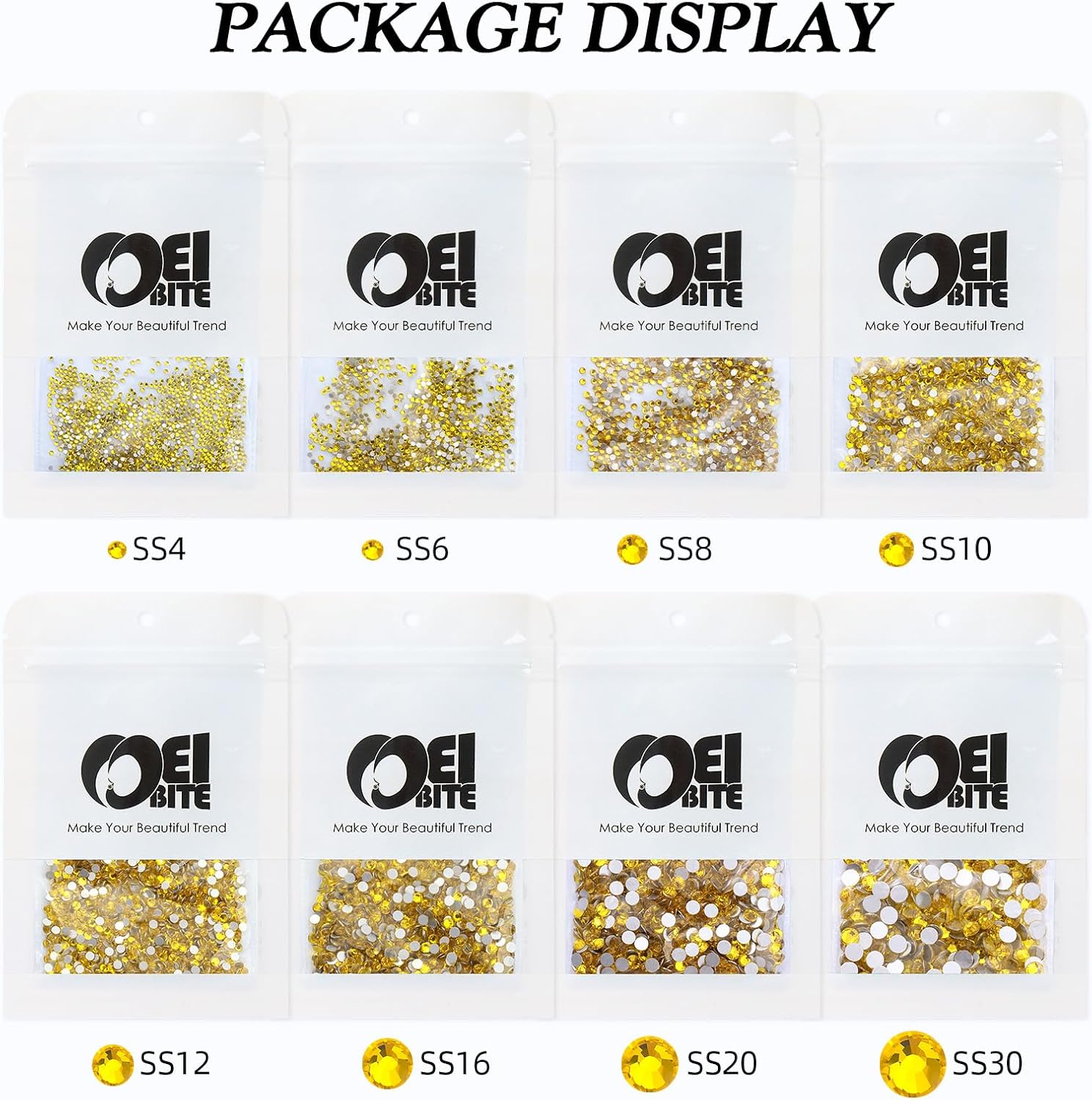 - Product Packaging: Bags packaging SS6 1.9~2.0 MM - 1440 Pcs yellow flatback rhinestones