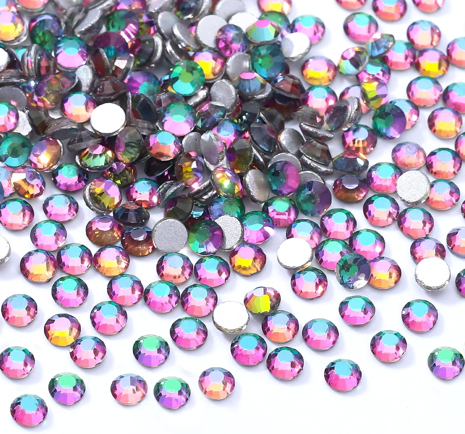 Green Volcano Flatback Rhinestones, Glass Rhinestones for Nail Art and Craft, Glue Fix, Loose Crystal Gemstones(Green Volcano, SS8, 1440pcs, 2.3-2.5mm)