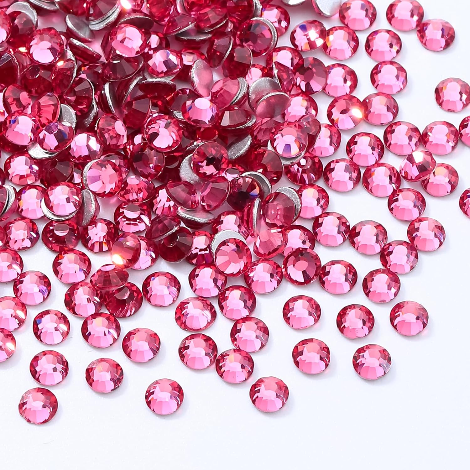 Rose Flatback Rhinestones, Glass Rhinestones for Nail Art and Craft, Glue Fix, Loose Crystal Gemstones(Rose, SS10, 1440pcs, 2.7-2.8mm)