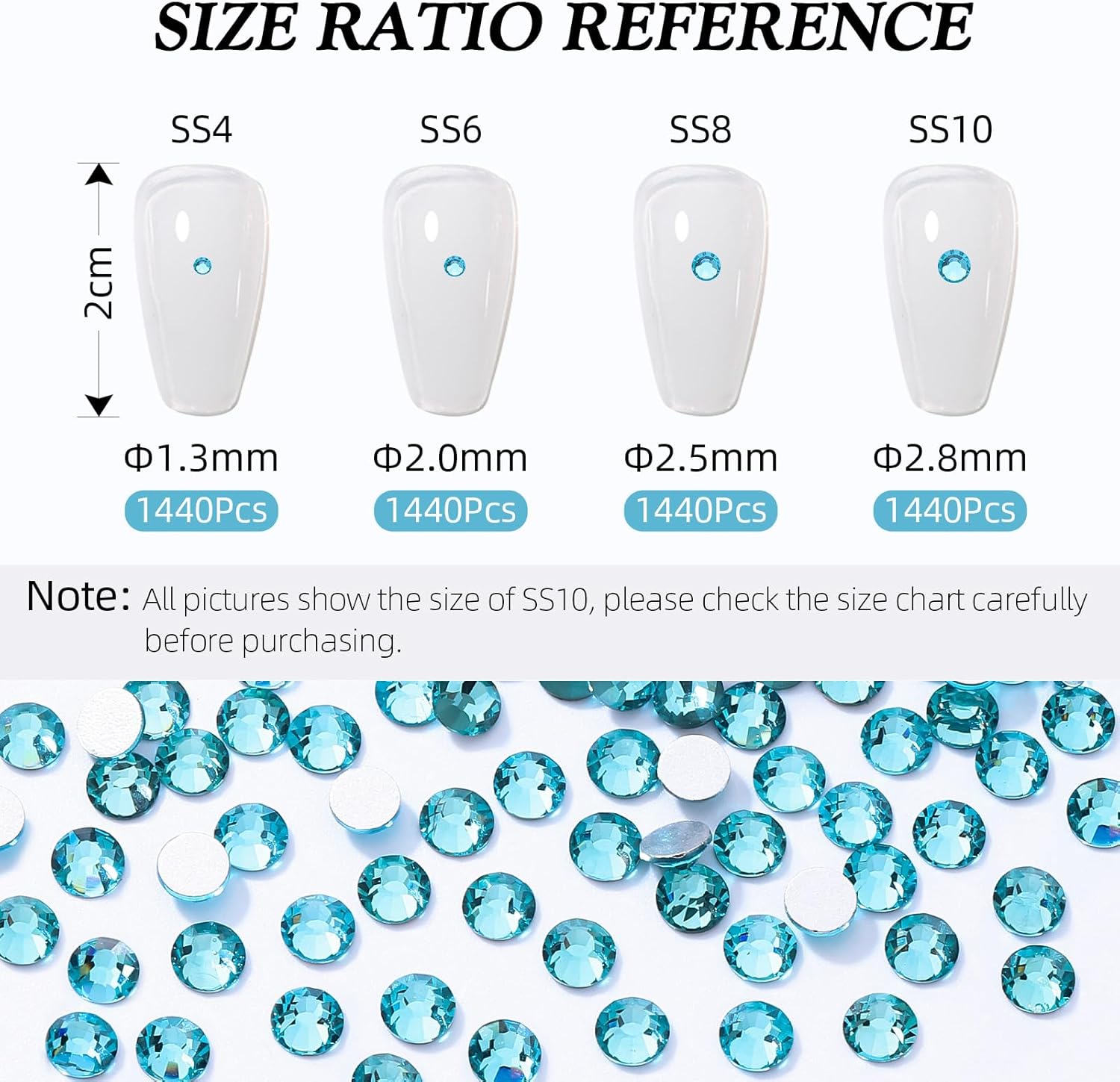Malachite Blue Flatback Rhinestones, Glass Rhinestones for Nail Art and Craft, Glue Fix, Loose Crystal Gemstones(Malachite Blue, SS6, 1440pcs, 1.9-2.0mm)
