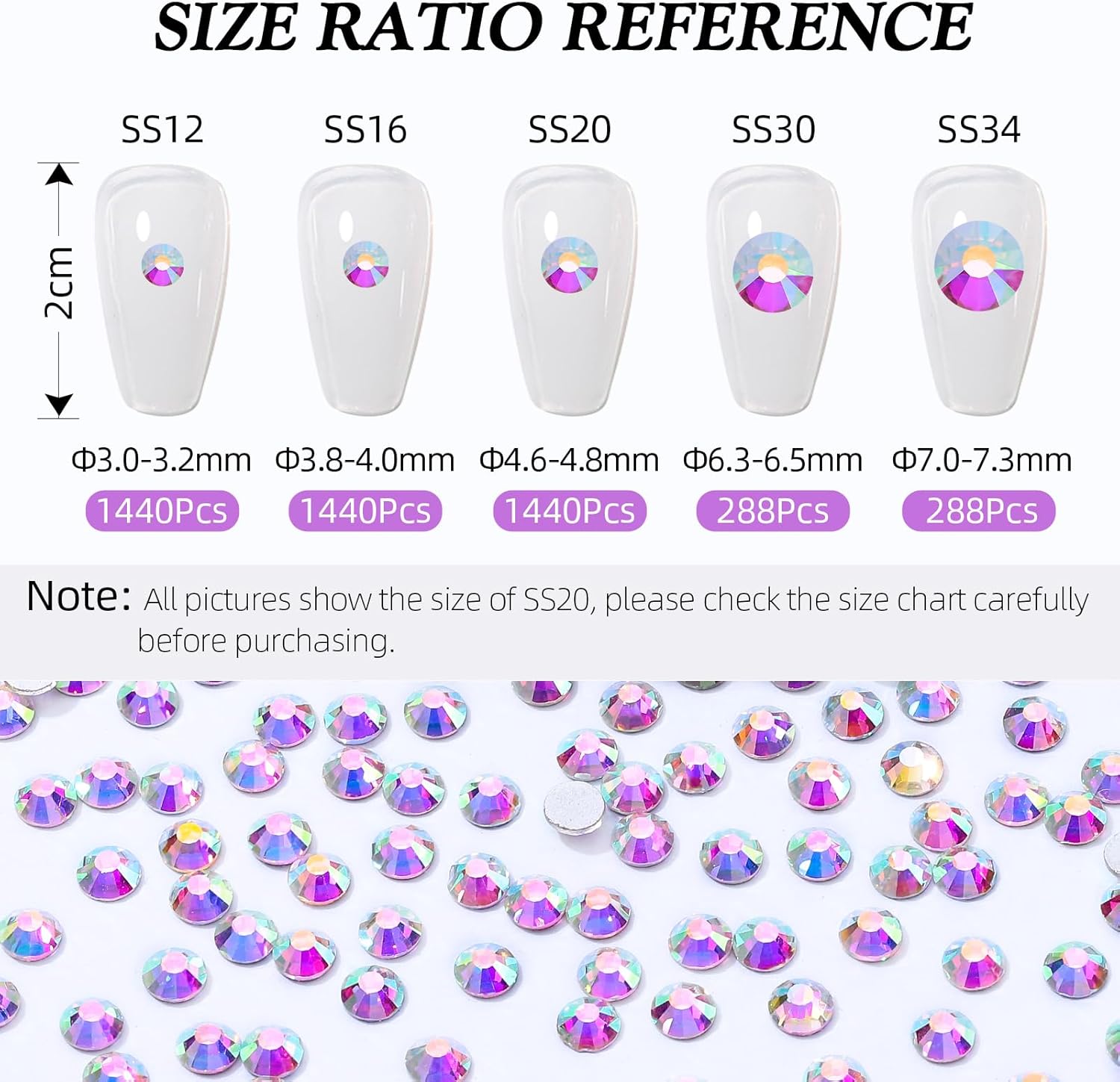 - Material: Glass/Artificial Crystal, Flat Back Round, High-precision cross-section, multi-sided cutting, high brightness, high Sparkly