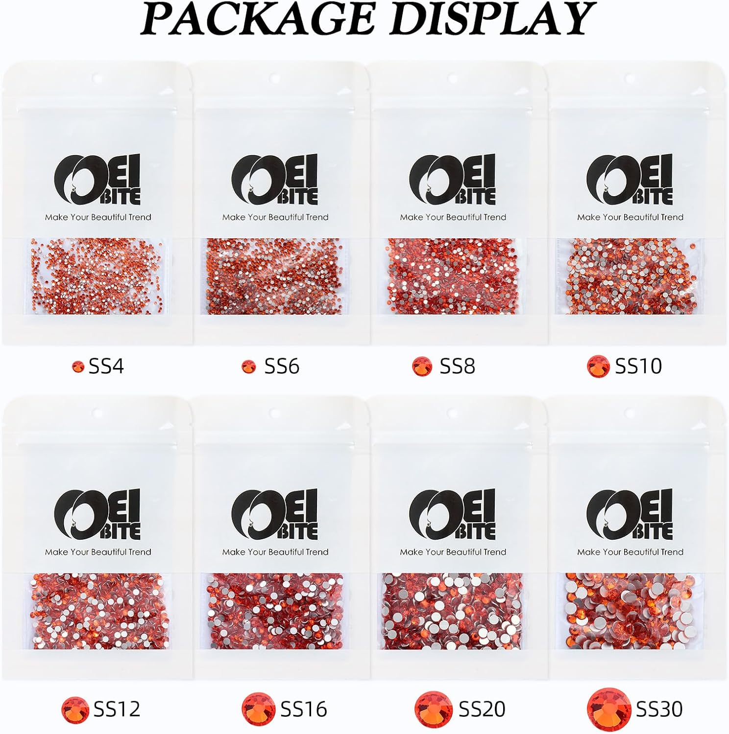 - Product Packaging: Bags packaging SS6 1.9~2.0 MM - 1440 Pcs orange flatback rhinestones
