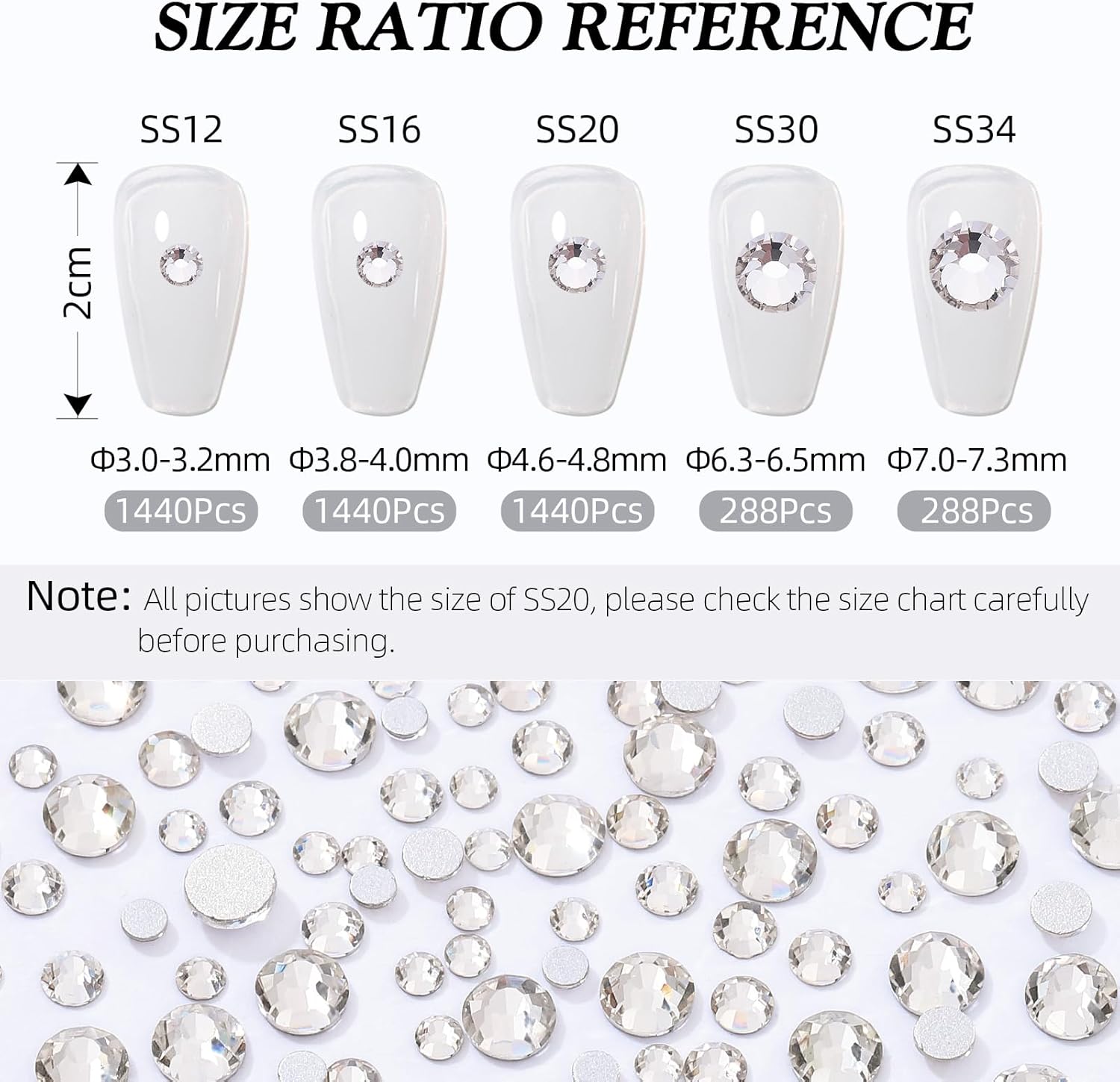 Crystal Clear Flatback Rhinestones, Glass Rhinestones for Nail Art and Craft, Glue Fix, Loose Crystal Gemstones(Crystal, SS12, 1440pcs, 2.9-3.0mm)
