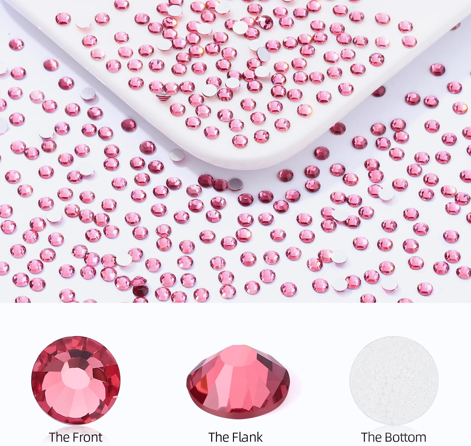 Rose Flatback Rhinestones, Glass Rhinestones for Nail Art and Craft, Glue Fix, Loose Crystal Gemstones(Rose, SS6, 1440pcs, 1.9-2.0mm)