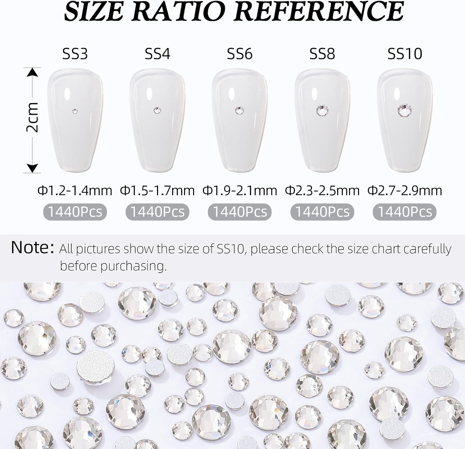 Crystal Clear Flatback Rhinestones, Glass Rhinestones for Nail Art and Craft, Glue Fix, Loose Crystal Gemstones(Crystal, SS3, 1440pcs, 1.3-1.4mm)