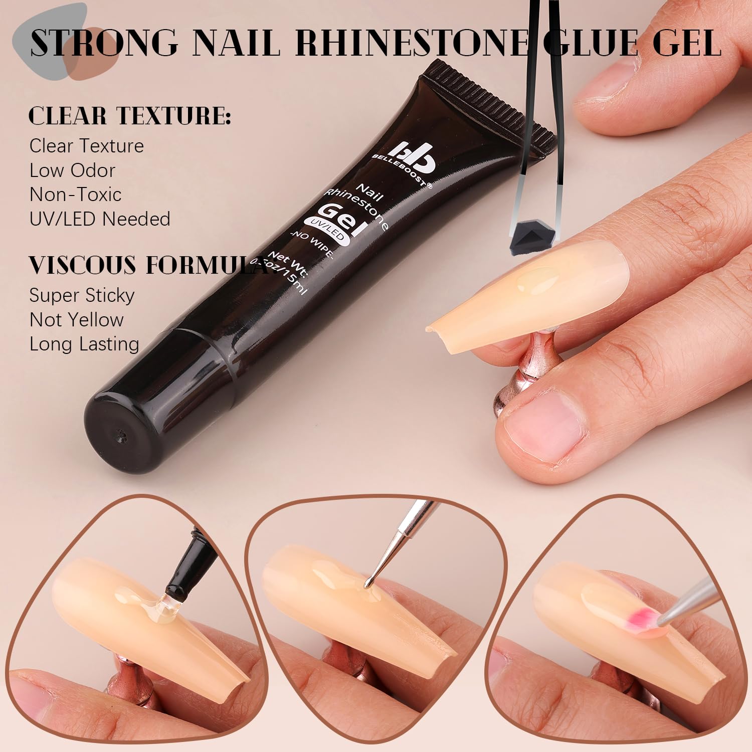 • 💎ADHESIVE GEL GLUE: The rhinestones glue gel uses a special, non-toxic and eco-friendly formula with strong tackiness, adhesion, and fluidity for easily applying decorations. It is a type of UV gel glue. After proper curing under a UV/LED lamp, the glue dries clear with superior bonding strength that can last a few weeks without falling off. With the designed tip, you can easily and conveniently apply the glue to the nail bed or the surface of false nails.