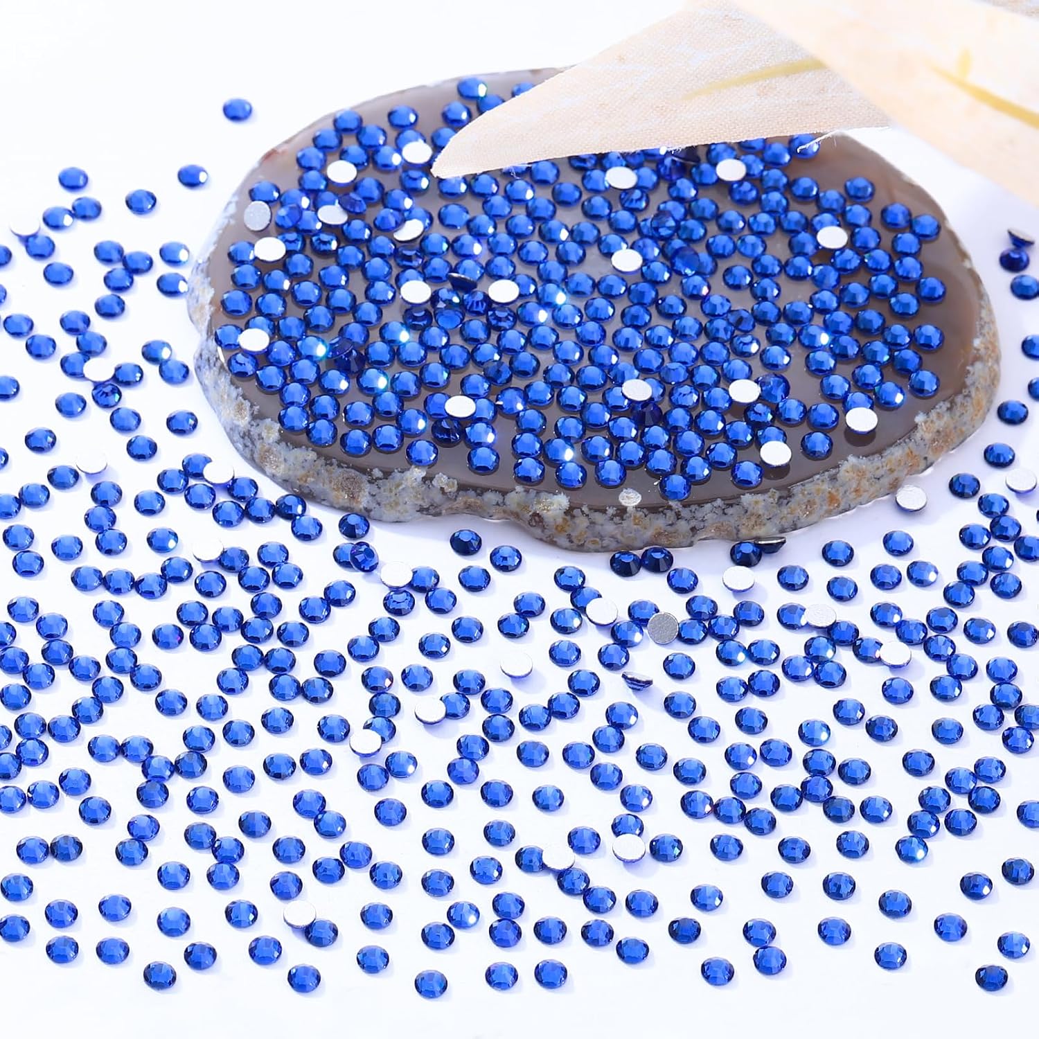 Sapphire Flatback Rhinestones, Glass Rhinestones for Nail Art and Craft, Glue Fix, Loose Crystal Gemstones(Blue, SS10, 2880pcs, 2.7-2.8mm)