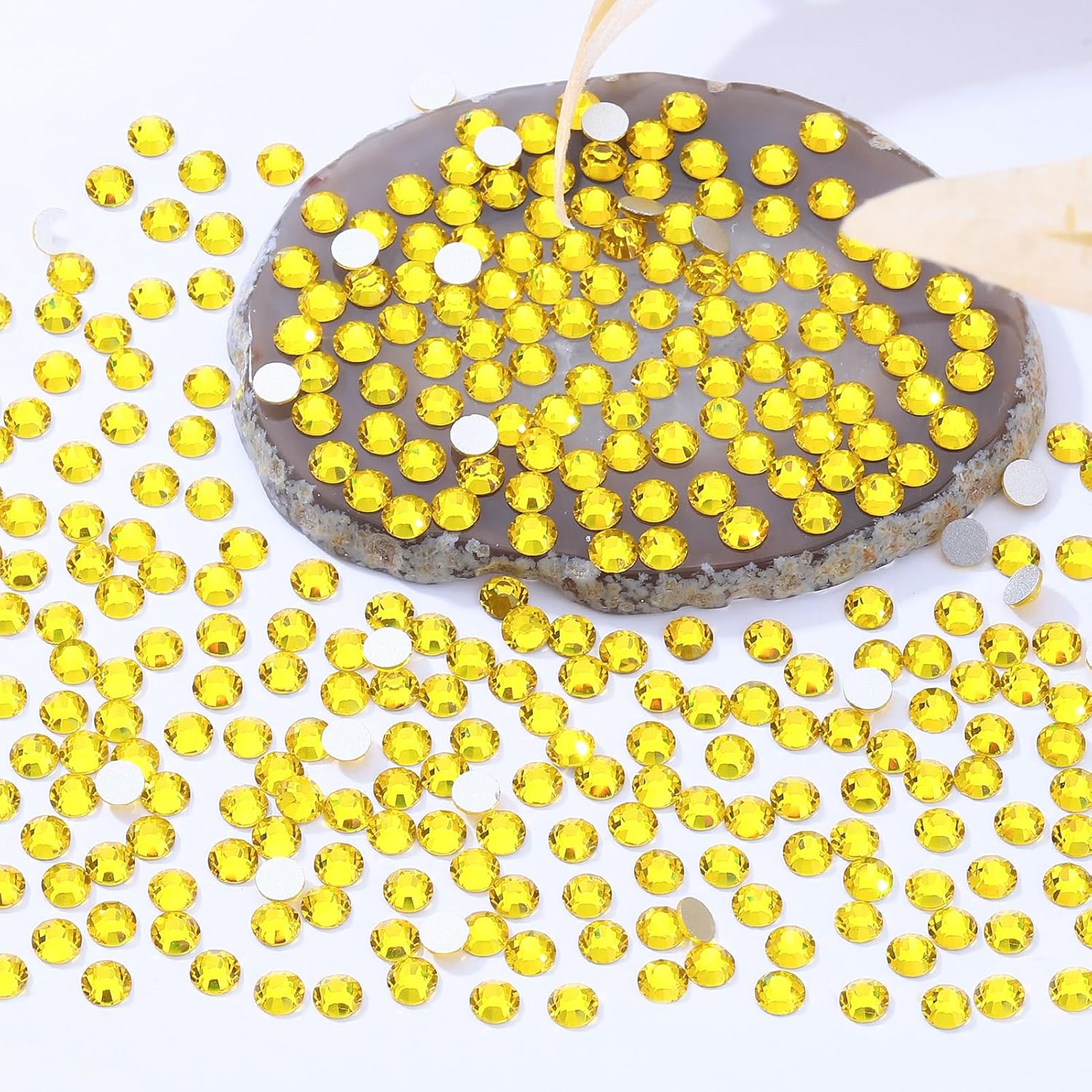 Yellow Flatback Rhinestones, Glass Rhinestones for Nail Art and Craft, Glue Fix, Loose Crystal Gemstones(Yellow, SS16, 2880pcs, 3.8-4.0mm)