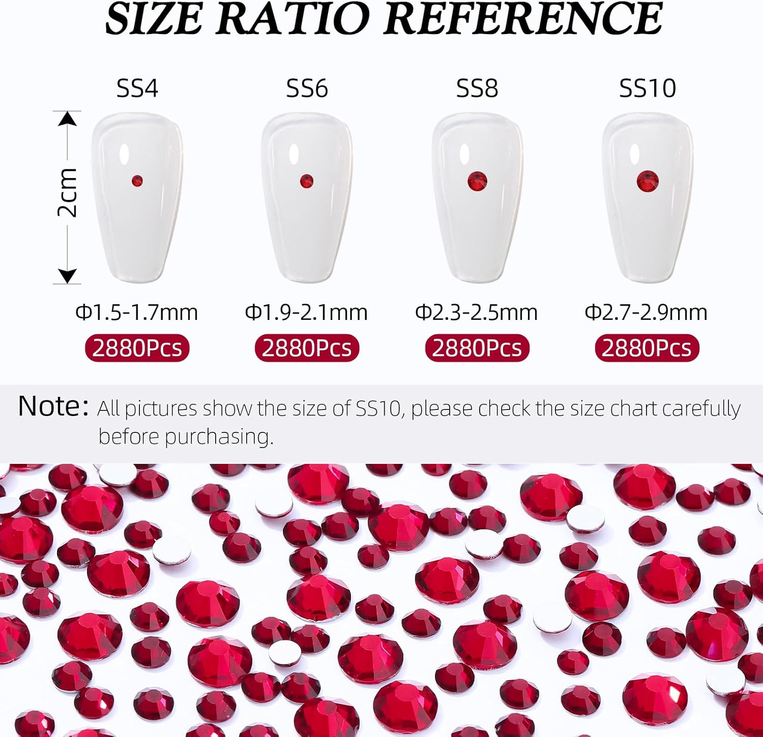 - Product Packaging: Bags packaging SS6 1.9~2.0 MM - 2880 Pcs siam flatback rhinestones.