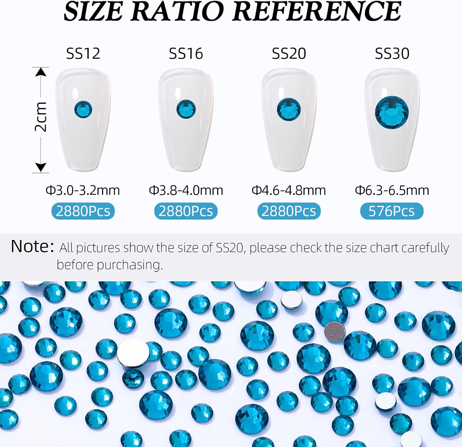 Malachite Blue Flatback Rhinestones, Glass Rhinestones for Nail Art and Craft, Glue Fix, Loose Crystal Gemstones(Malachite Blue, SS30, 576pcs, 6.4-6.6mm)