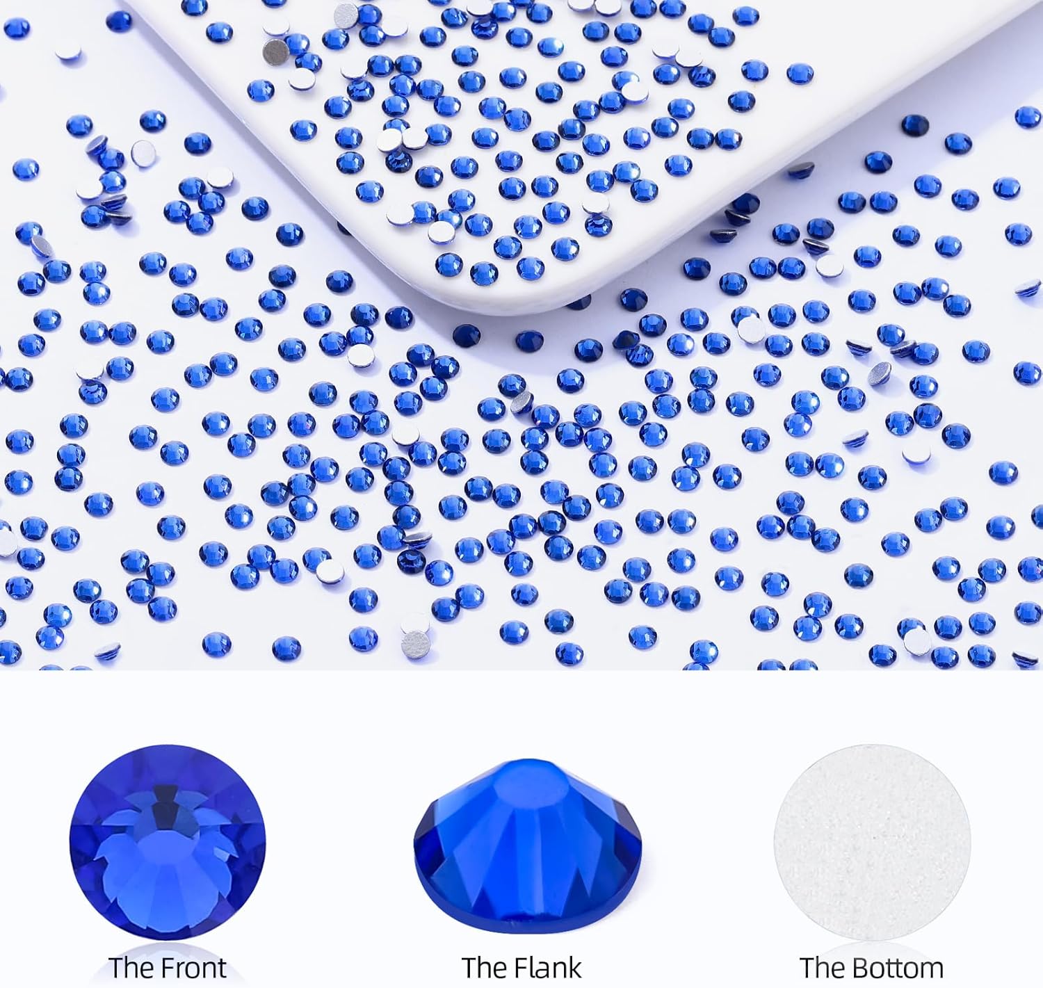 Sapphire Flatback Rhinestones, Glass Rhinestones for Nail Art and Craft, Glue Fix, Loose Crystal Gemstones(Blue, SS6, 2880pcs, 1.9-2.0mm)