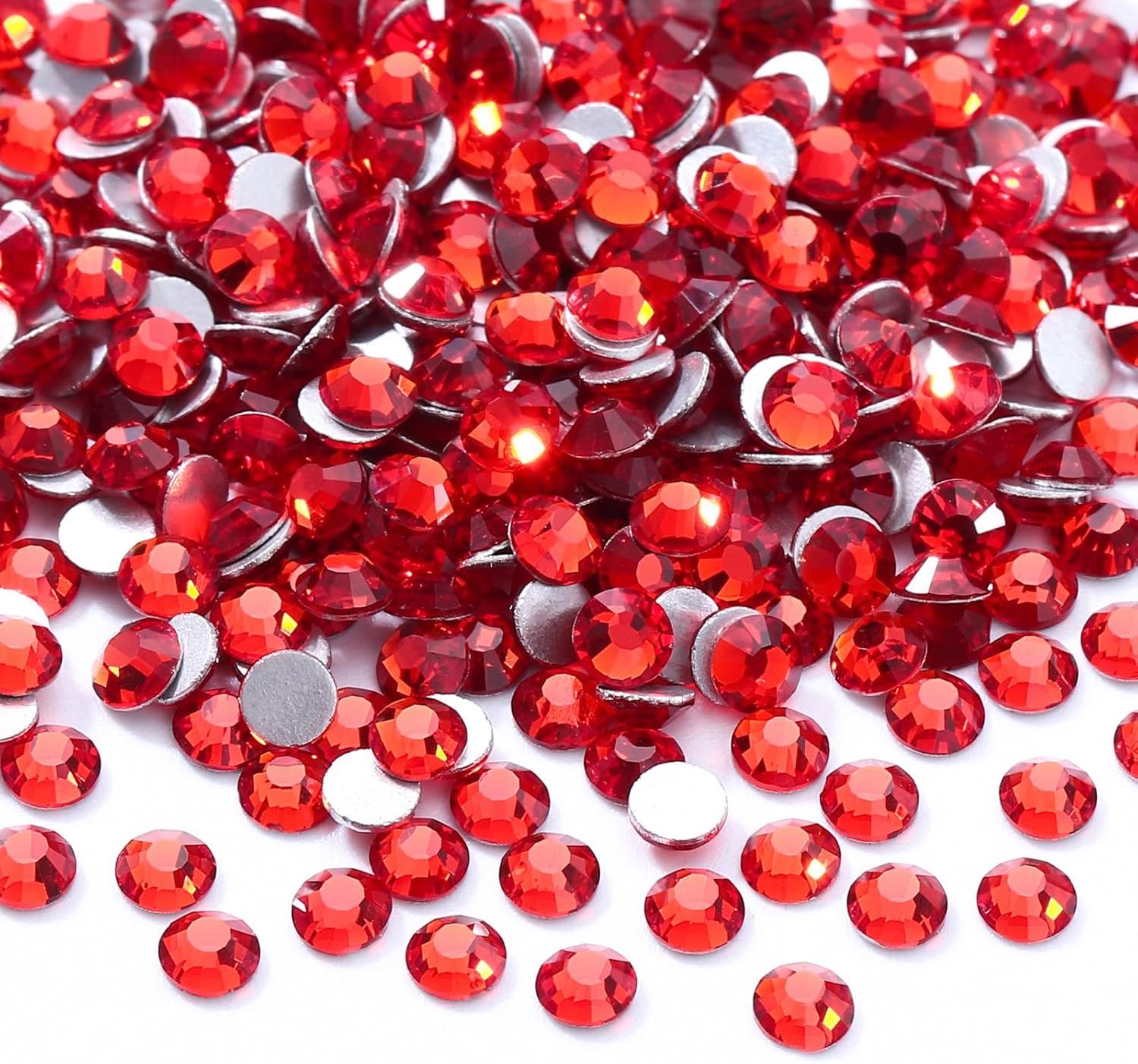 Red Flatback Rhinestones, Glass Rhinestones for Nail Art and Craft, Glue Fix, Loose Crystal Gemstones(Red, SS10, 2880pcs, 2.7-2.8mm)