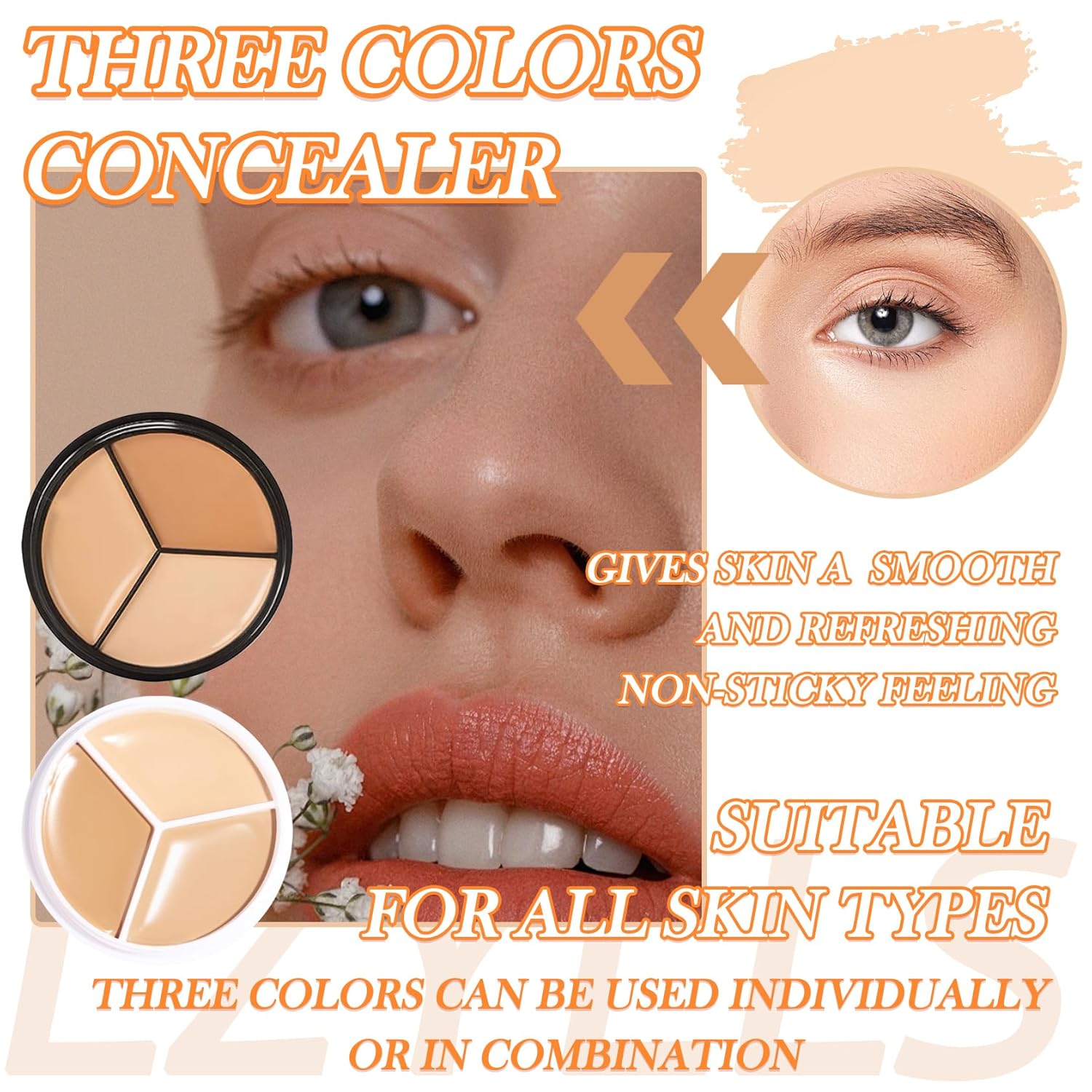 - 🌸【Three color concealer palette】Makeup cream contour palette can be used in different areas, to solve a variety of skin imperfections. Three colors can be freely matched, not only can be used in a single color, but also can be mixed.