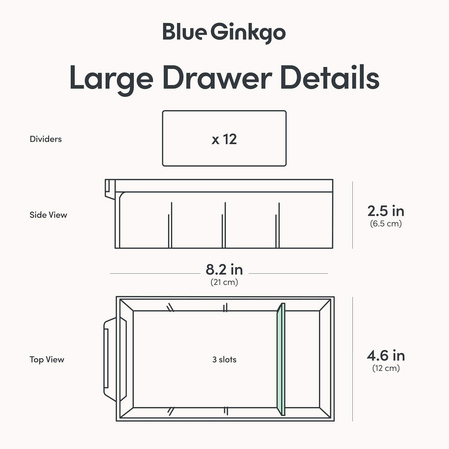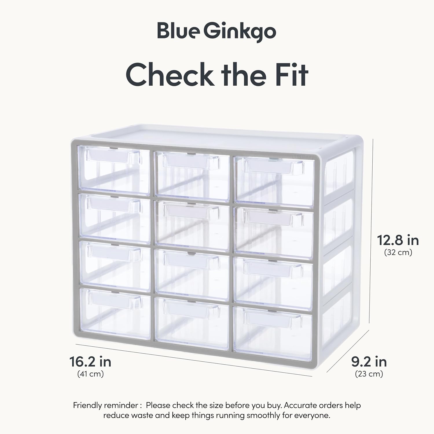 - Size - Dimensions of the 12 drawer organizer storage unit: Overall Unit: [H12.8 x D9.2 x W16.2 inches] Each Drawer: [H2.5 x D8.2 x W4.6 inches].
