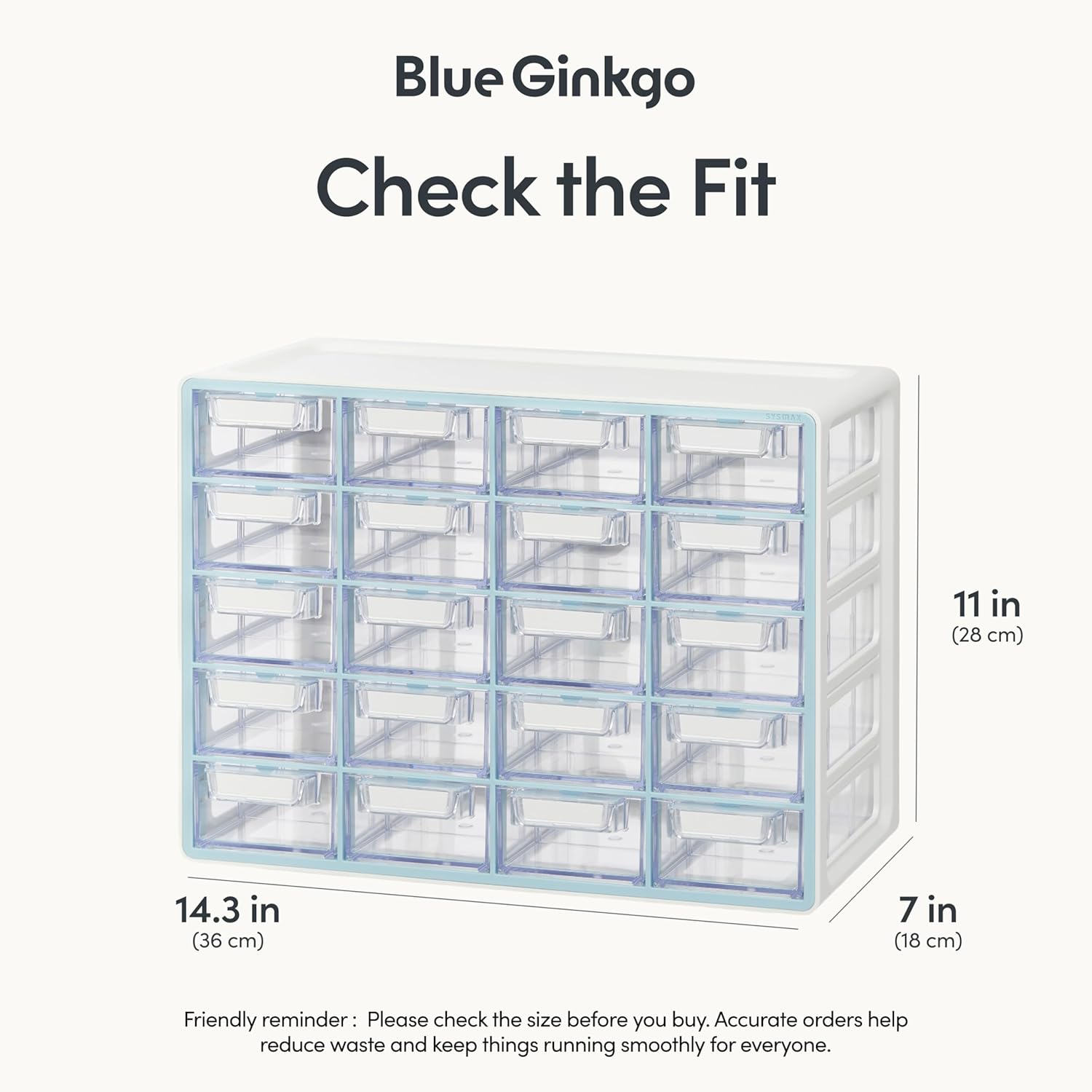 Blue Ginkgo Small 20-Drawer Cabinet – Stackable Clear Organizer for Hardware, Beads, Plastic Bricks, Office, and Craft Storage (Made in Korea, Blue)