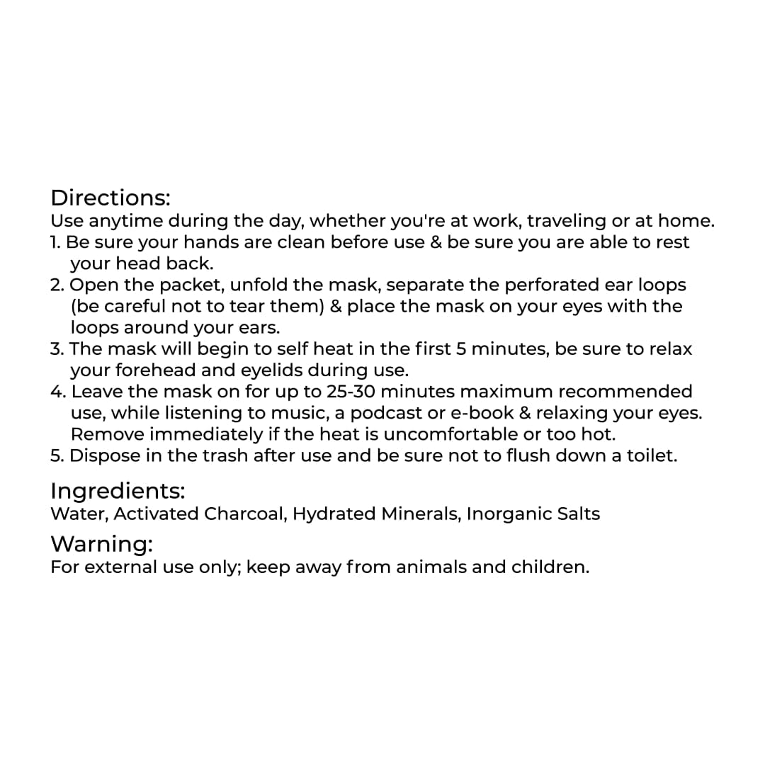 - šššš šššššš ššš ššššš: No additional heat source needed, just open the elastic loops on the back and put it on, warm eye compress mask will auto start heating. All you need to do is close your eyes and enjoy our eye heat mask for instant Sensitive eyes relief without going to the spa.