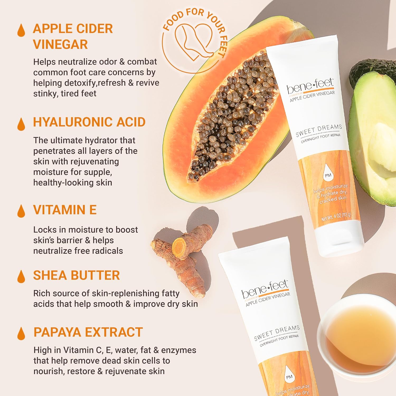 Benefeet Sweet Dreams Overnight Foot Repair - Night Cream for Detox, Moisturize & Soften Dry Cracked Skin, With Apple Cider Vinegar, Turmeric & Borage Oil, 4oz (2 Pack)