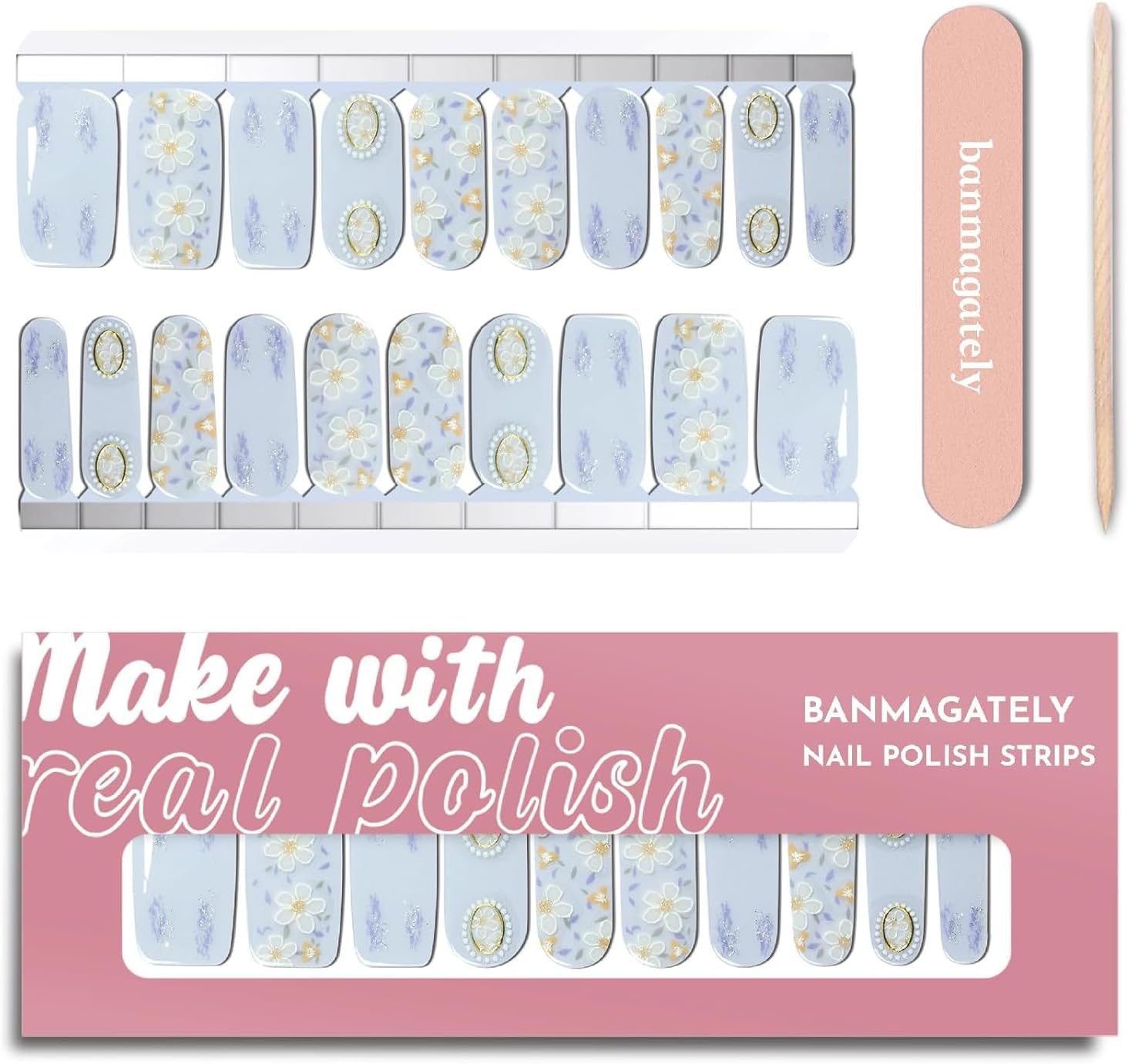 - Quick & Easy Application:Achieve a perfect manicure in minutes! Simply select the right size strip, peel off the protective layer, and apply. Stretch, fold under the nail tips, and trim excess with the included nail file. To remove, just peel from the cuticle end—no hassle, no mess.