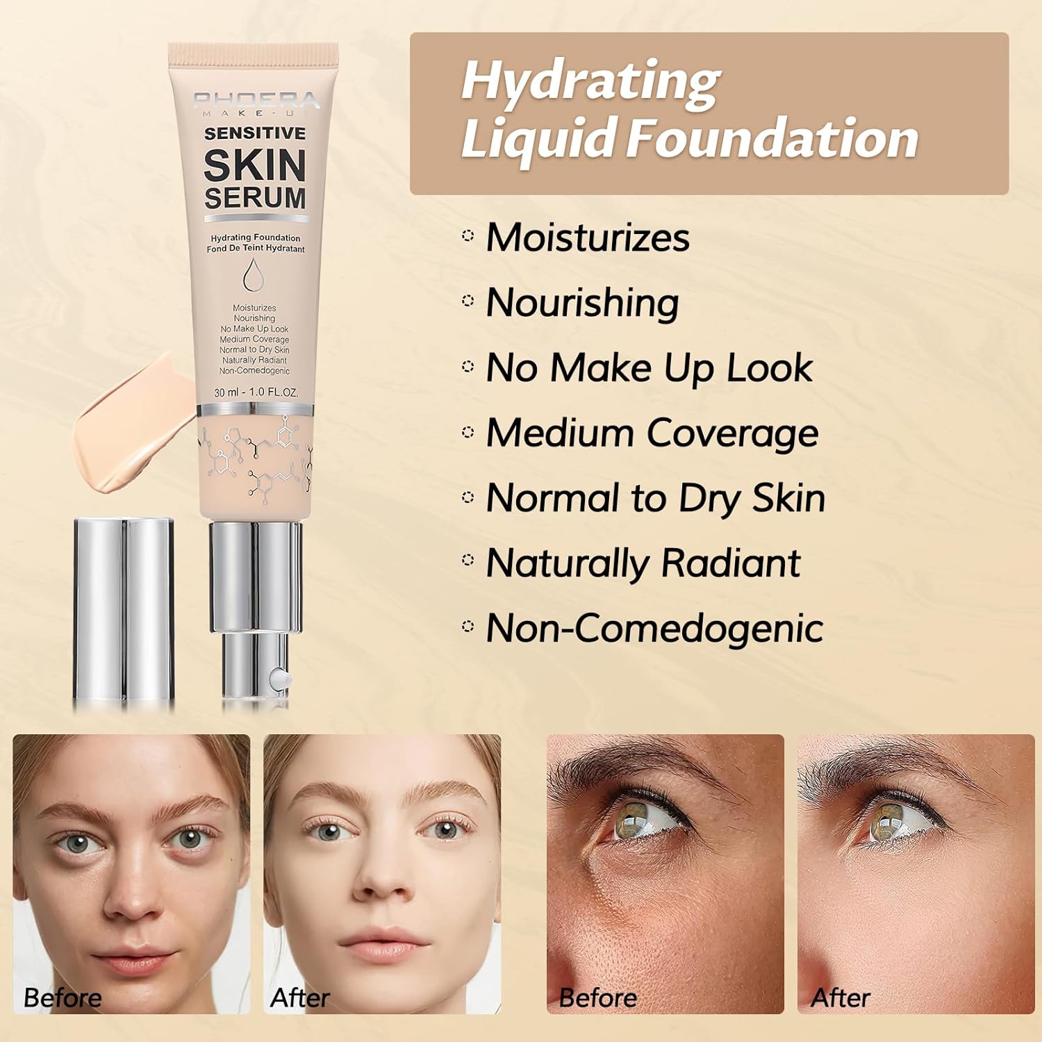 Phoera Foundation Makeup,Flawless Soft Matte Full Coverage with Matte Finish,Hydrating Serum Foundation,Face Makeup for Normal and Dry Skin(N02 Nude, 1PC)