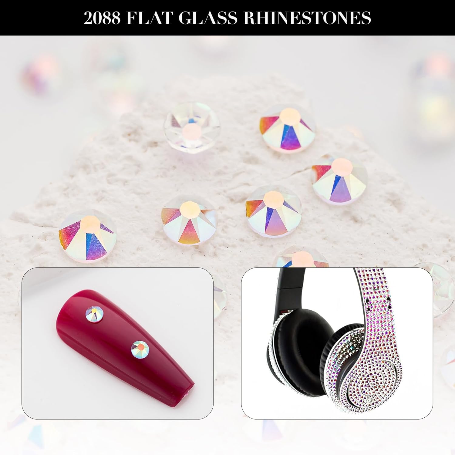 - HIGH-QUALITY MATERIAL AND LEAD-FREE: The rhinestones are made of upgraded glass and formed through advanced cutting processes. The back of the rhinestone has a metallic coating that reflects light, making the rhinestone sparkle like a diamond.
