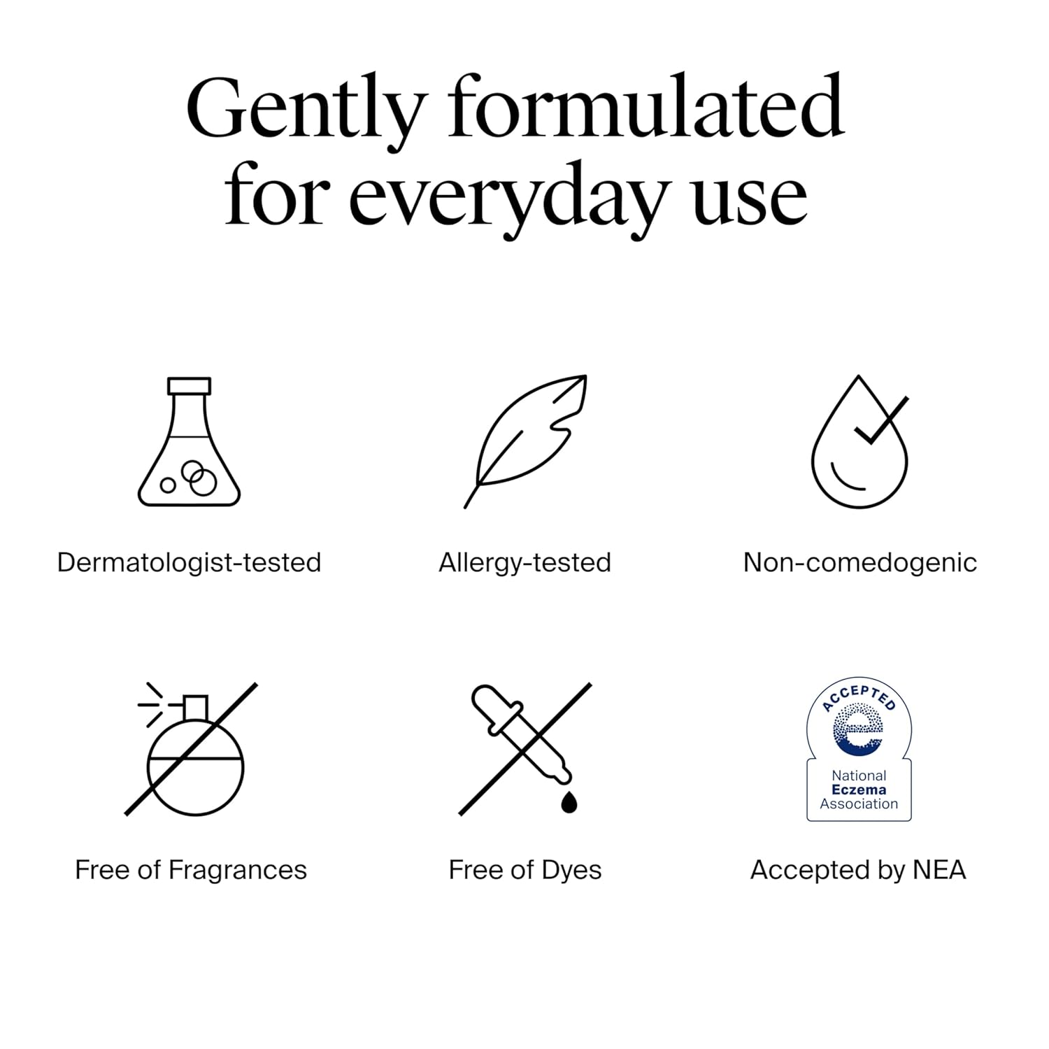 - Facial cleanser: Trial size hydrating gel facial cleanser transforms into a silky foaming lather to remove makeup, dirt, oil, and impurities; fragrance free, non-comedogenic, and suitable for sensitive or acne-prone skin