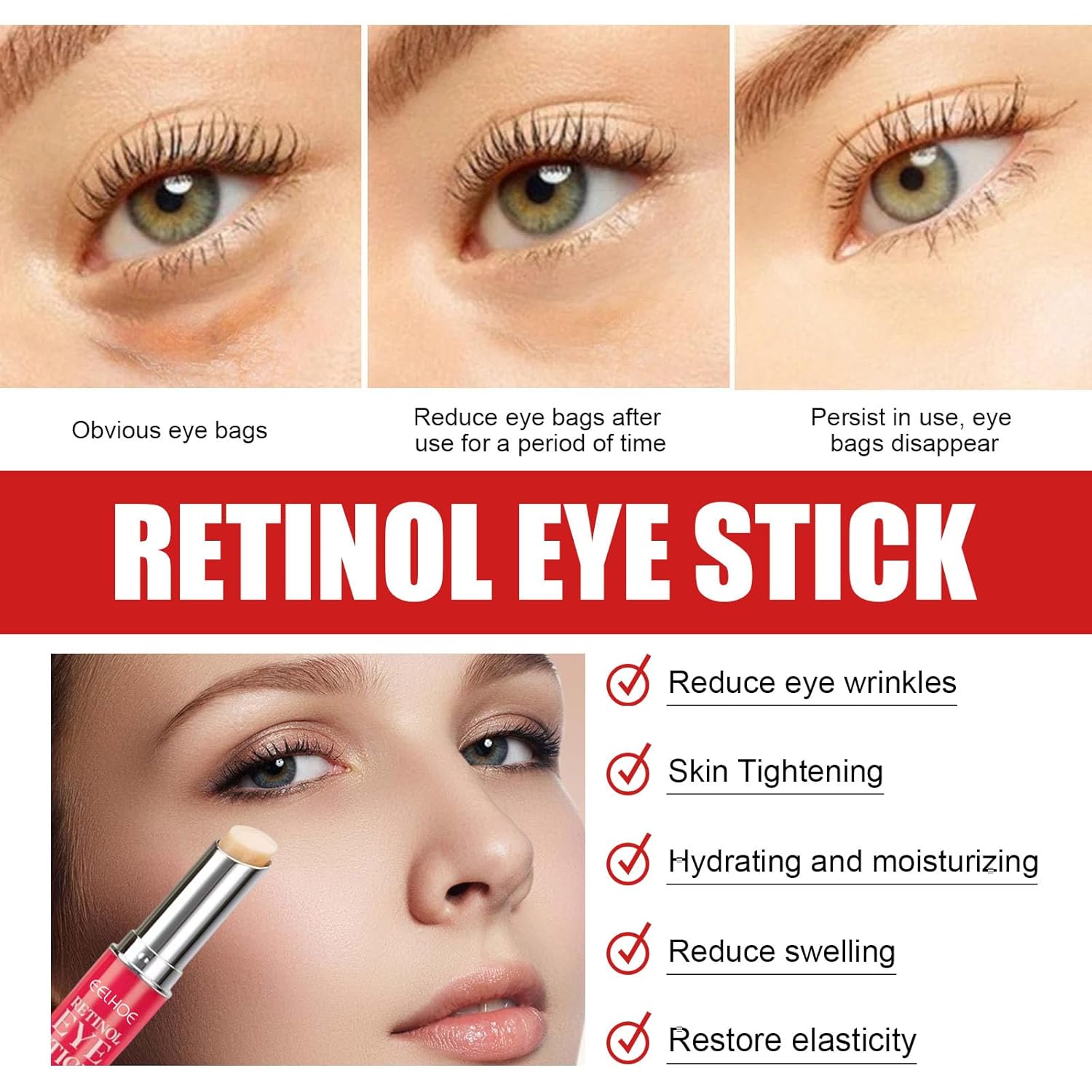 - 【Retinol Eye Cream for Dark Circles and Puffiness】Our retinol eye stick is a multi-care balm, integrated eye care product with anti-aging benefits, addressing eye problems such as dark circles, fine lines, and fatigue and puffiness.