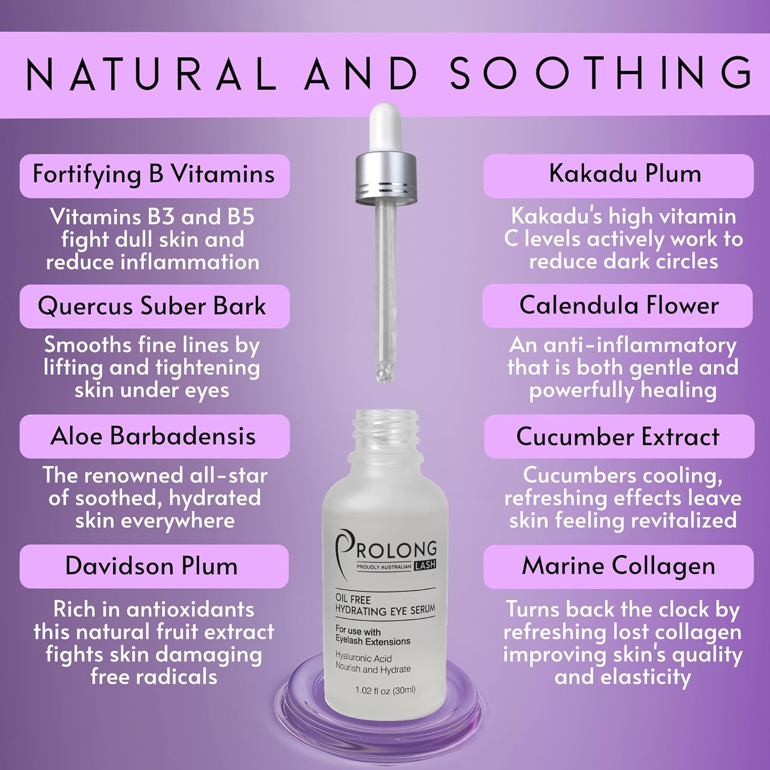 - ā Say Goodbye To Dry - Prolong Lash eye serum is created with a full 5% Hyaluronic Acid. Guaranteeing maximum moisture retention for supple, depuffed eyes, that are showy and glowy all day.