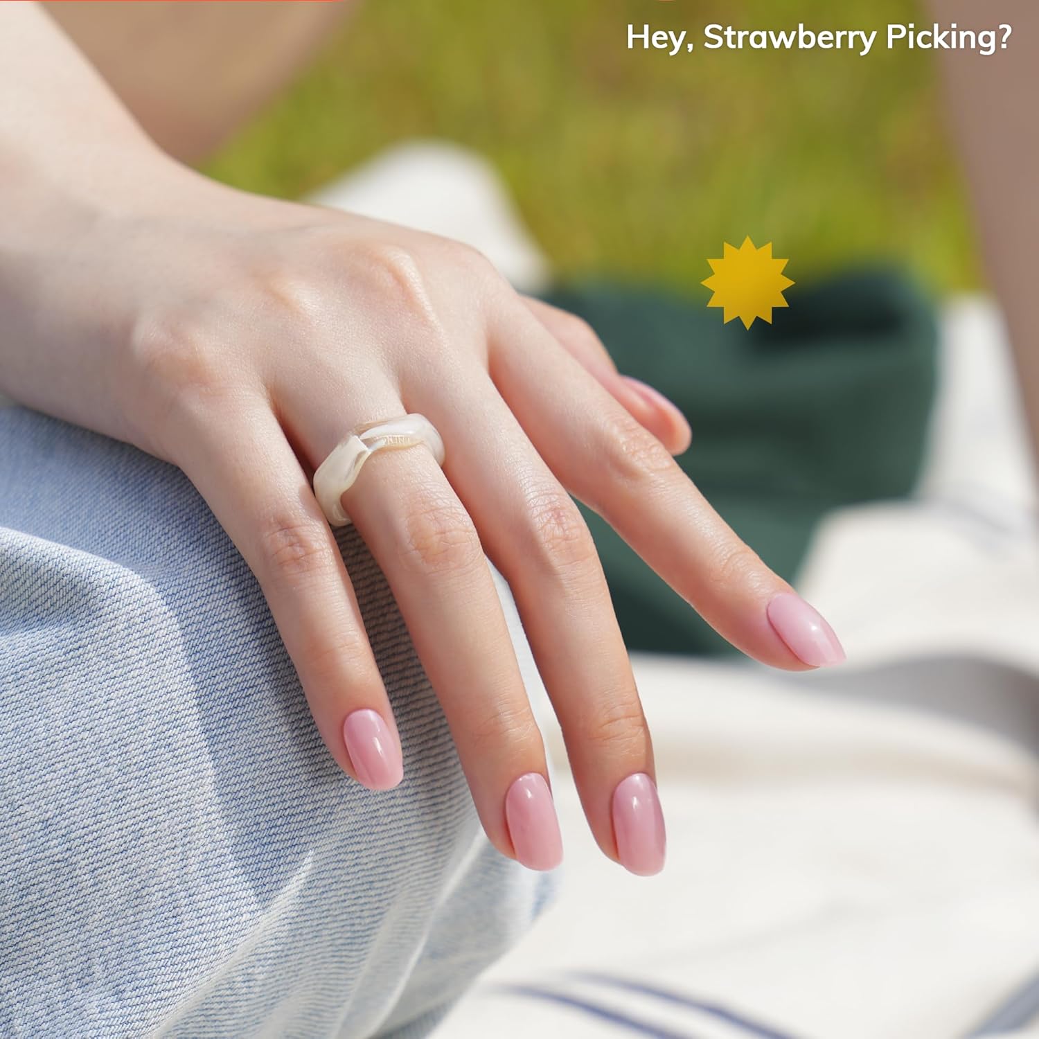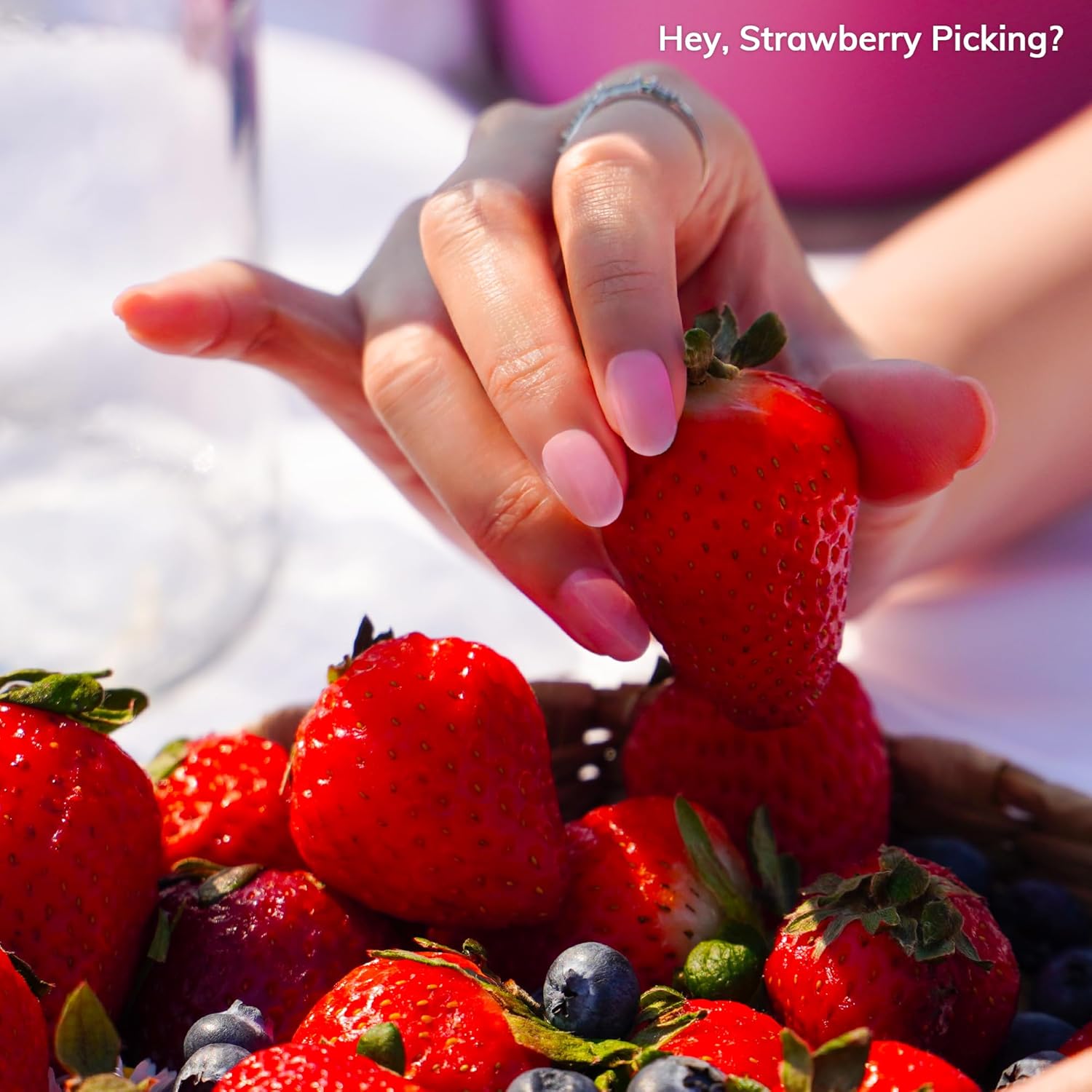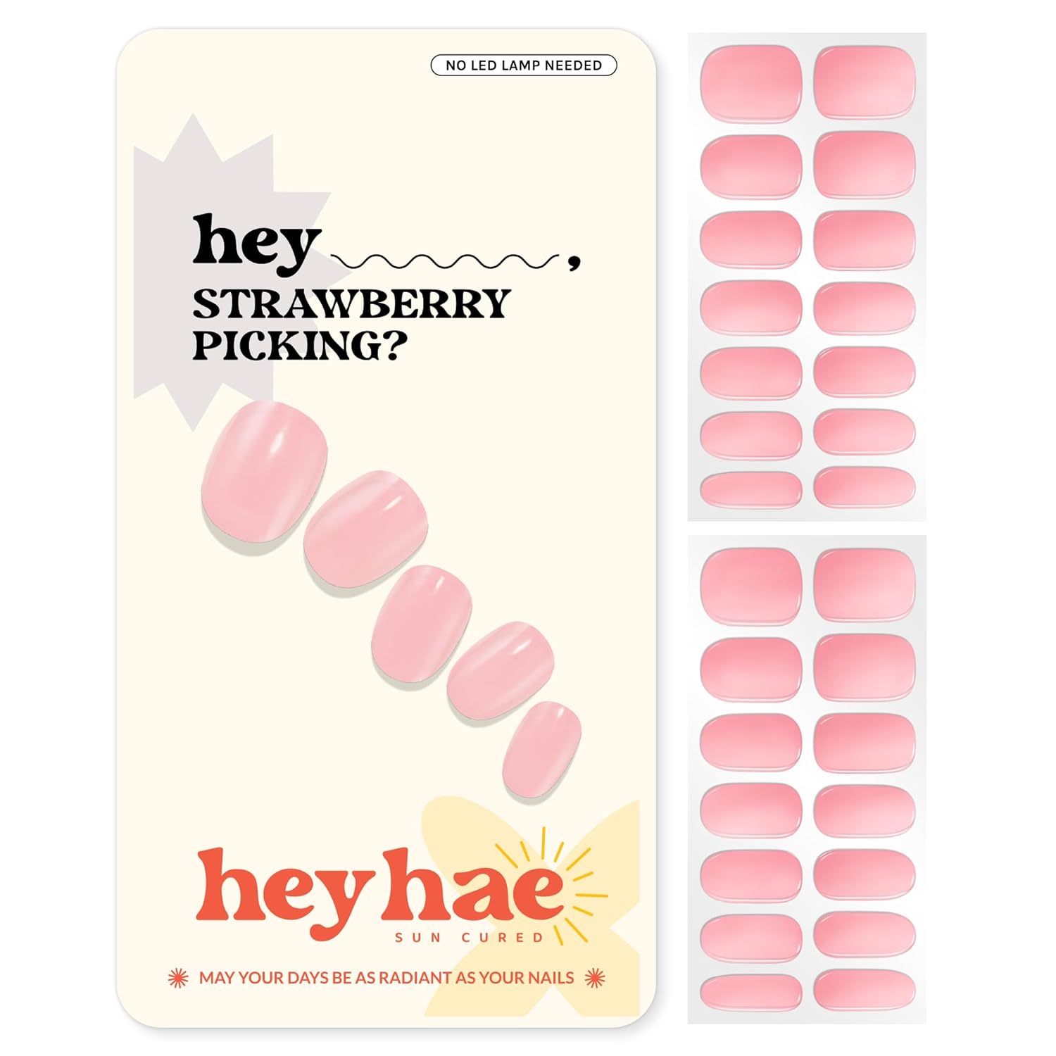 Semi Cured Gel Nail Strips | No LED Lamp Needed | Solid, Pink, Spring | Easy Apply & Remove, Salon Quality | Includes 28 Strips, 1 Prep Pads, Nail File & Wooden stick - Hey, Strawberry Picking?