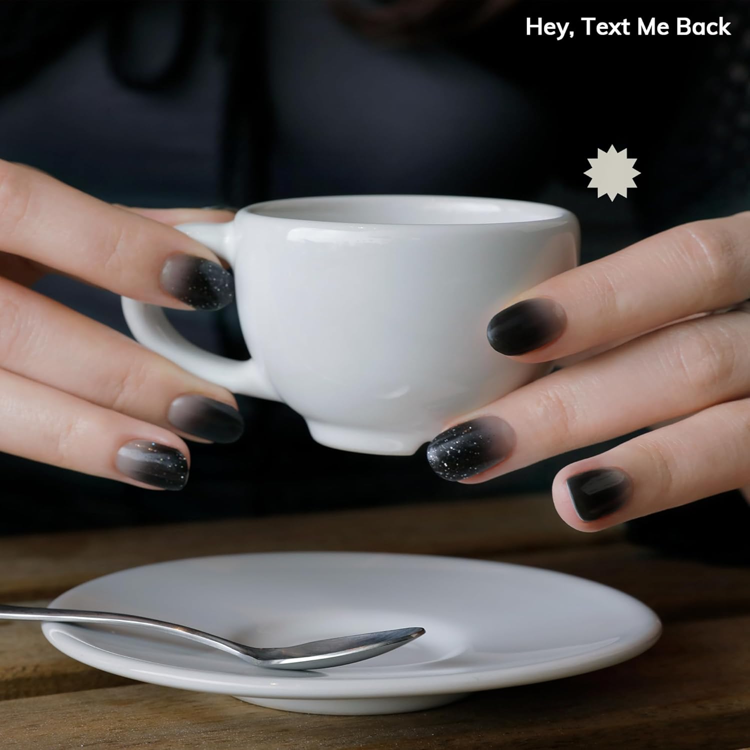 Semi Cured Gel Nail Strips | No LED Lamp Needed | Ombre, Black | Easy Apply & Remove, Salon Quality | Includes 28 Strips, 1 Prep Pads, Nail File & Wooden Stick - Hey, Text Me Back