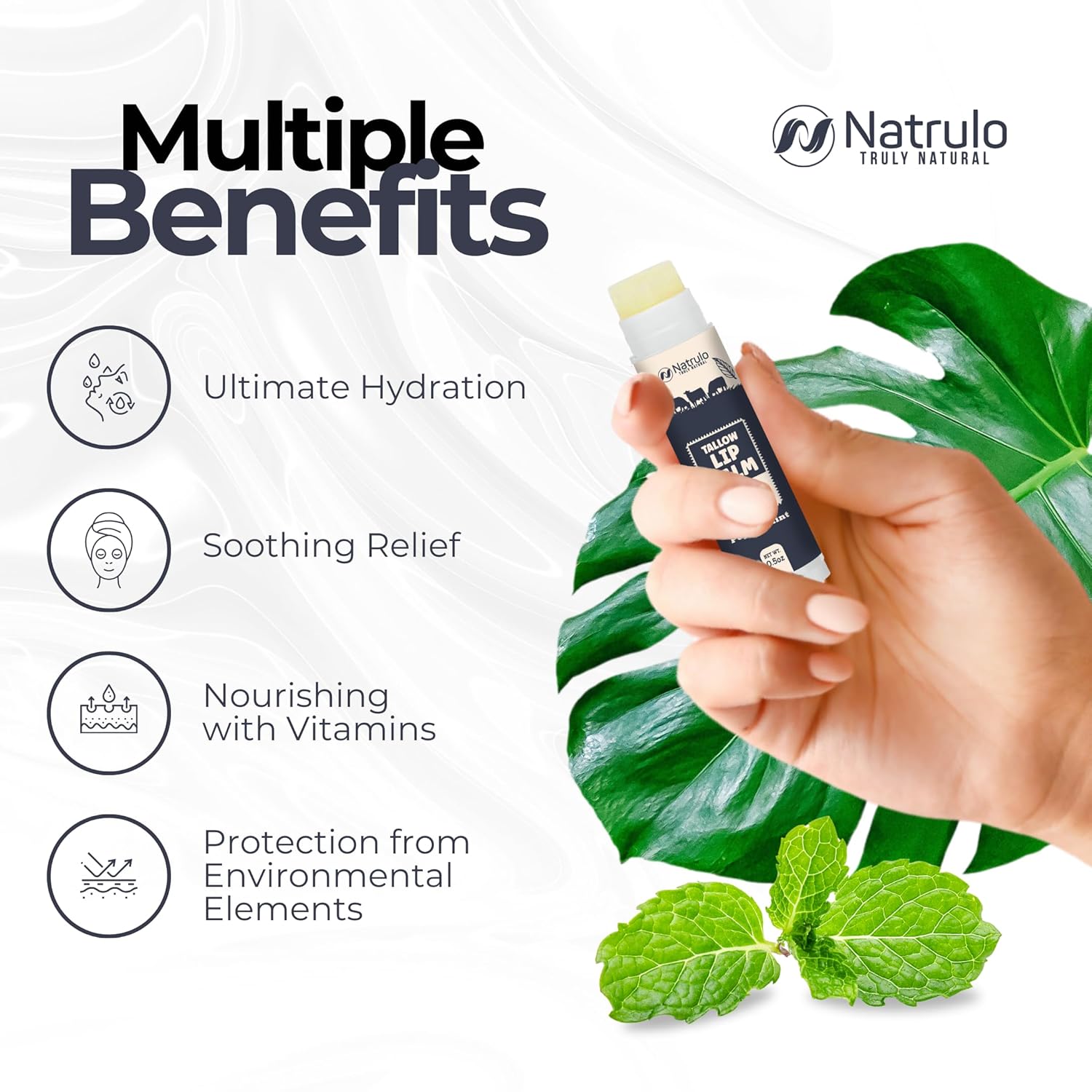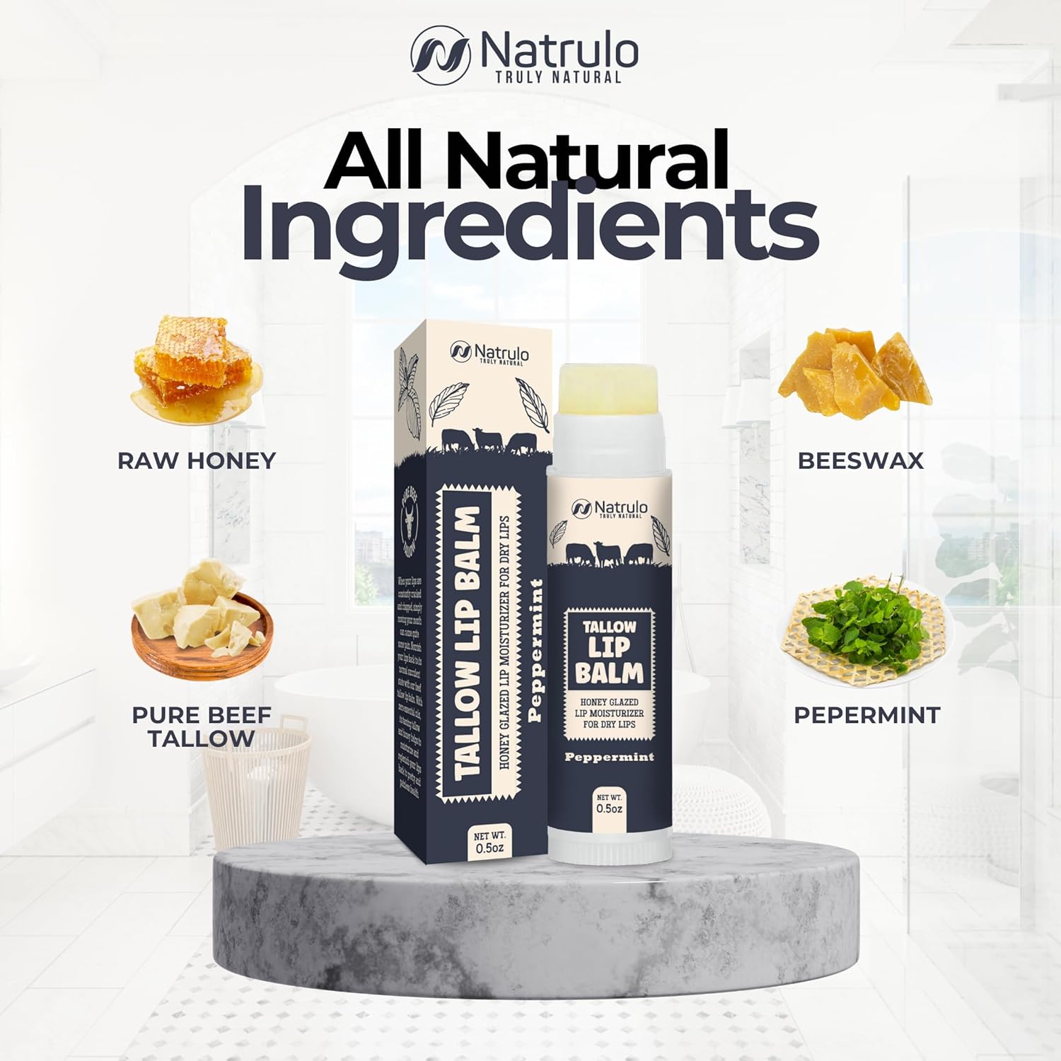 • INTENSELY HYDRATING FORMULA: Immerse your lips in moisture with our grass-fed organic beef tallow lip balm with peppermint flavor. Crafted with natural fats, akin to those in human skin, it maintains your lips' moisture barrier for enduring hydration and velvety softness.