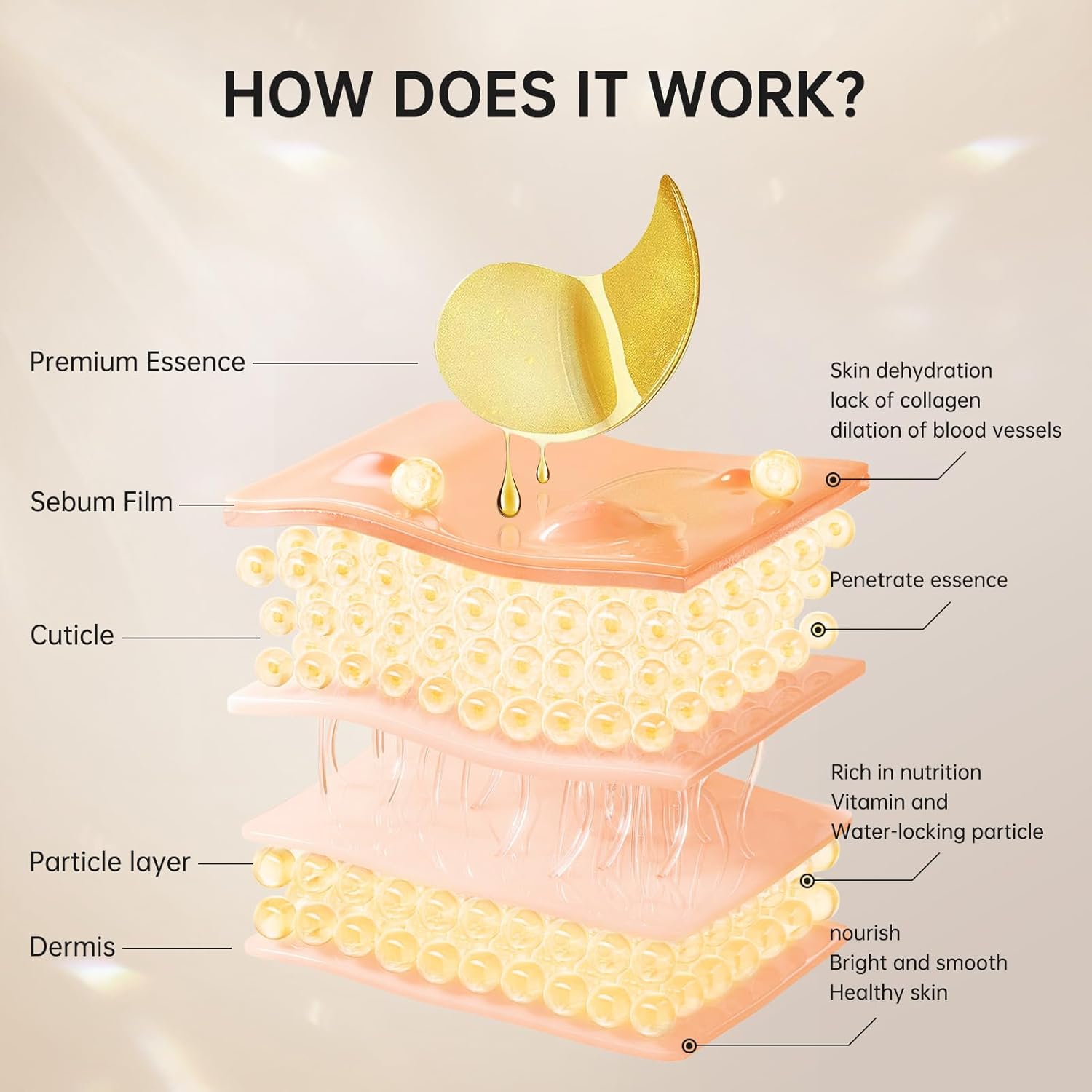 - 【Easy to Use】Our gold eye patches come with a small spoon for use. You only need to clean your face and use the small spoon to take out two under eye masks and apply them where you need them. In addition, our golden eye mask adopts an ergonomic design. The upper face fits the curvature of human eyes very well and is not easy to fall off.