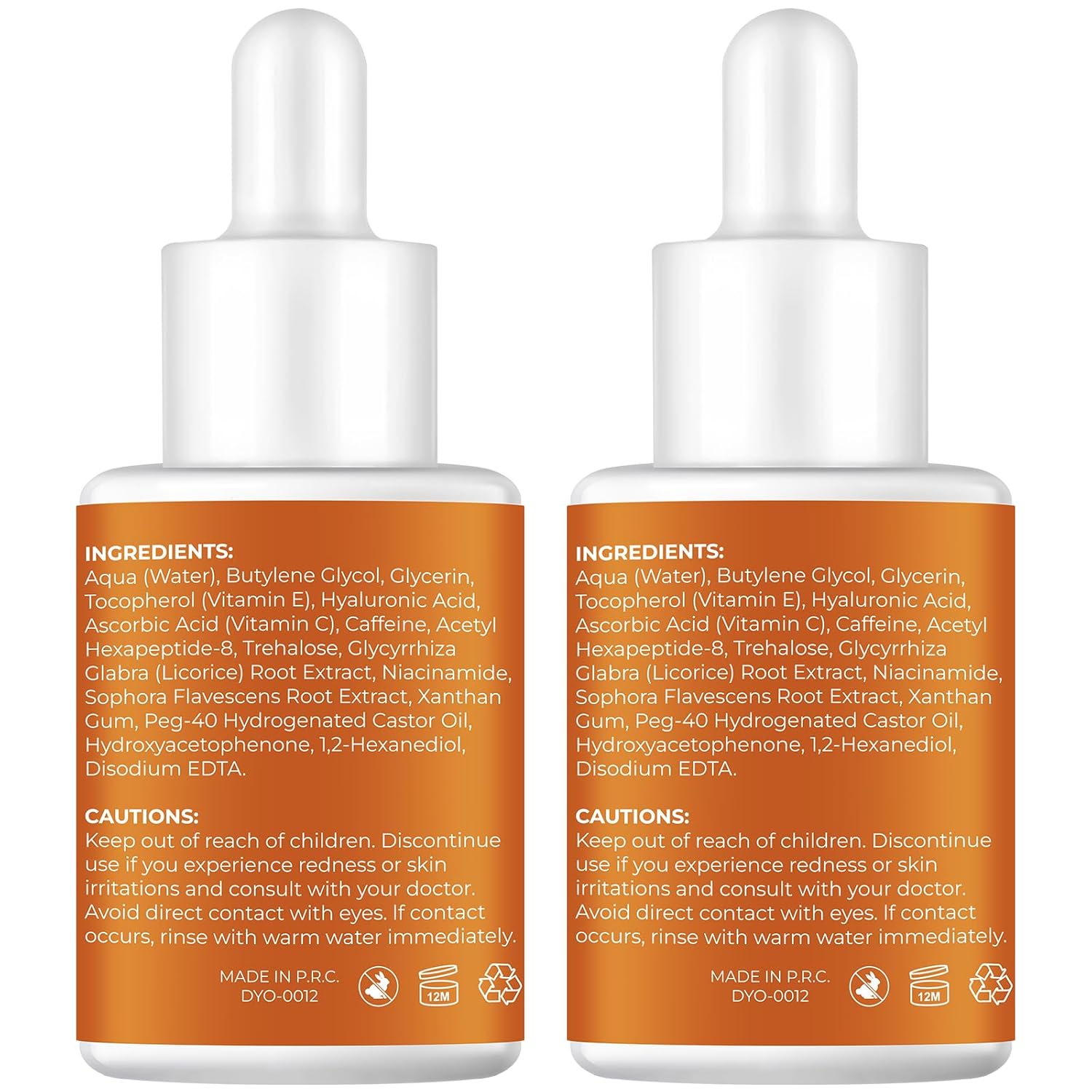 - 【EFFECTIVE ANTI-AGING INGREDIENTS】Created with a blend of premium quality ingredients, you don't have to worry about parabens, dyes, fragrances, or sulfates when using this safe formula. Stimulate visibly smooth skin with skin loving ingredients like acetyl hexapeptide-8, caffeine, niacinamide, hyaluronic acid, & vitamin c&e, which all work together to help smooths the appearance of fine lines and wrinkles, provides long-lasting hydration.
